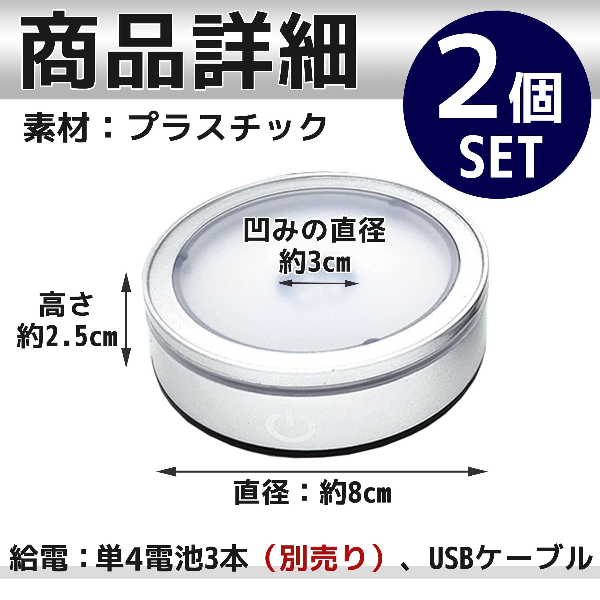 光る台座 7色 照明 ディスプレイ 置物 クリスタル ハーバリウム 2個セット (シルバー)