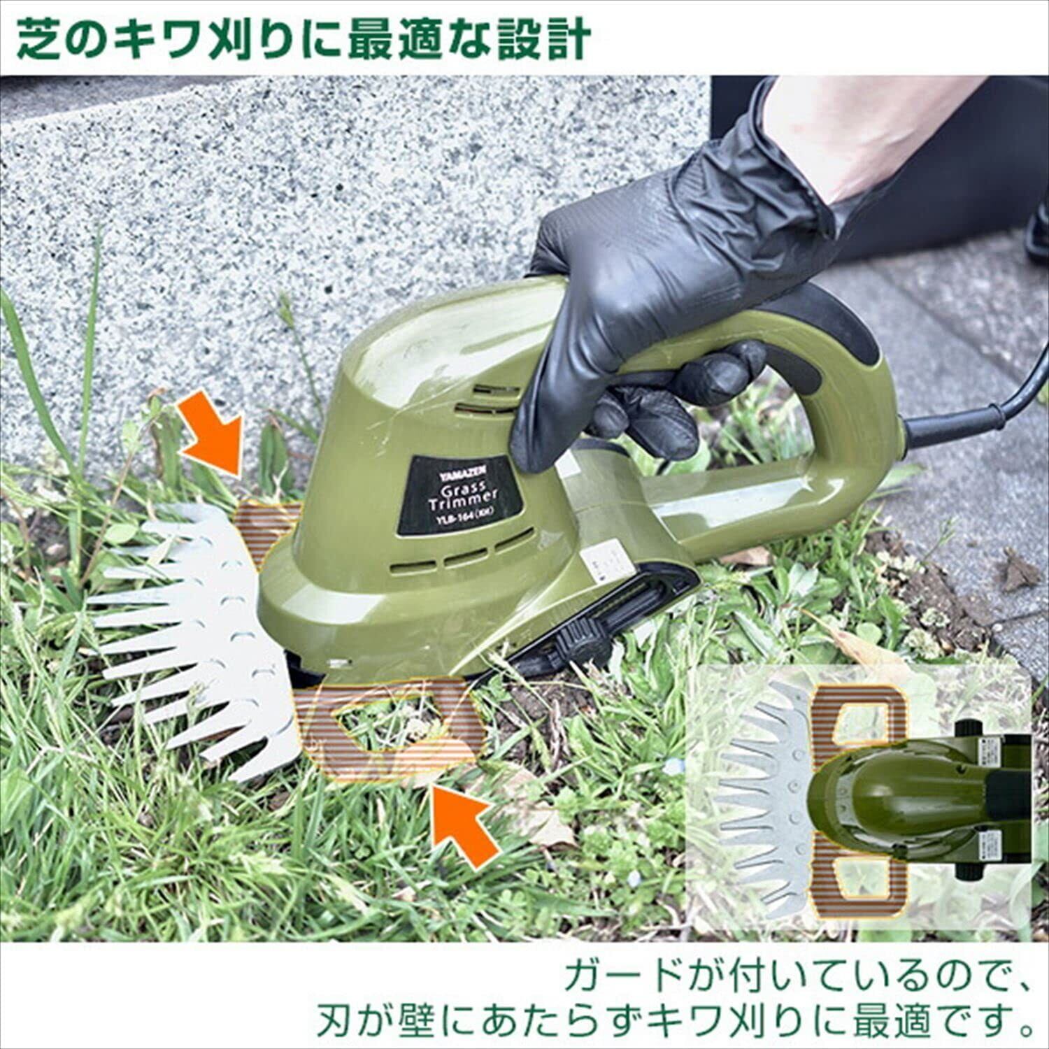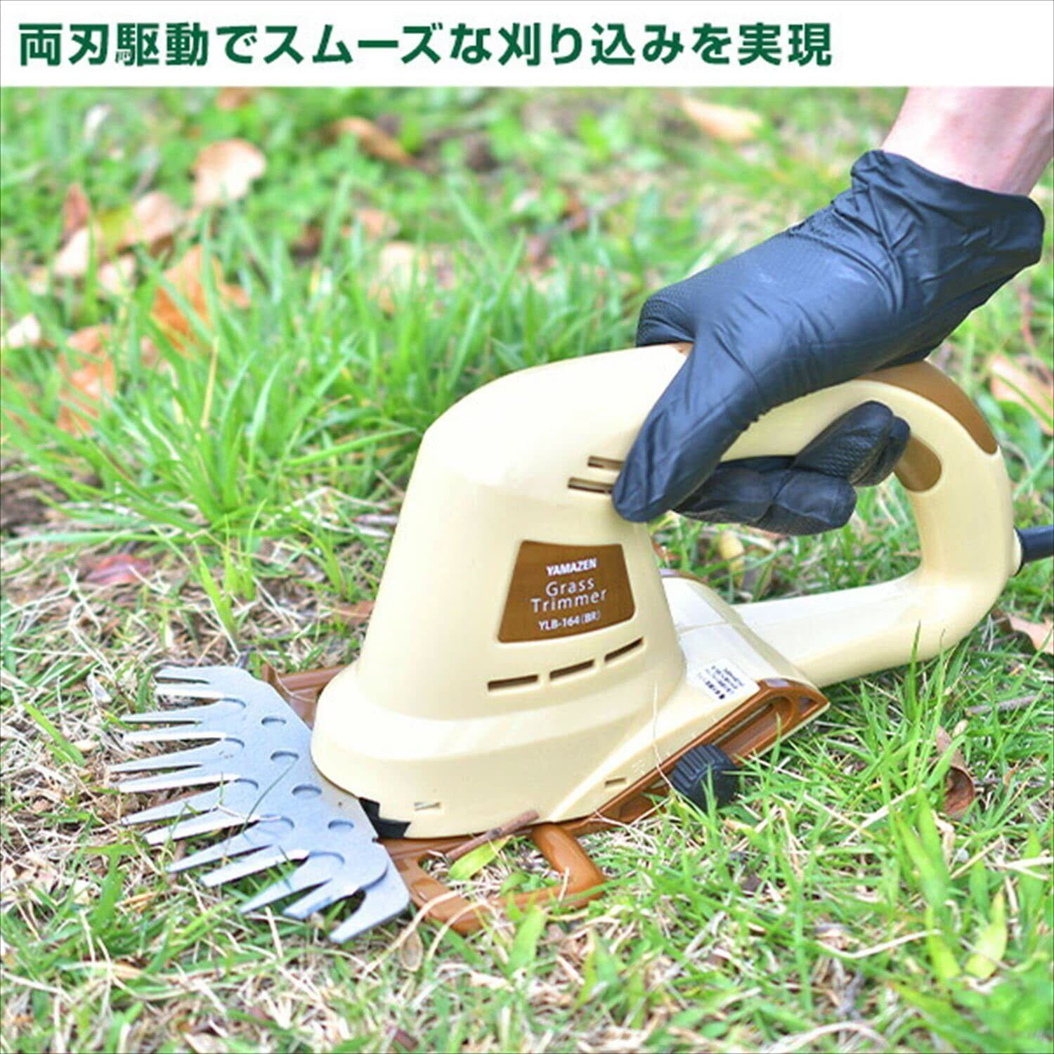[山善] 芝刈り機 グラスバリカン AC電源 両刃駆動 ガード付き 刈込幅約160mm 刈込高さ調整15-30mm 延長コード別売 カーキ YLB-N164(KH)