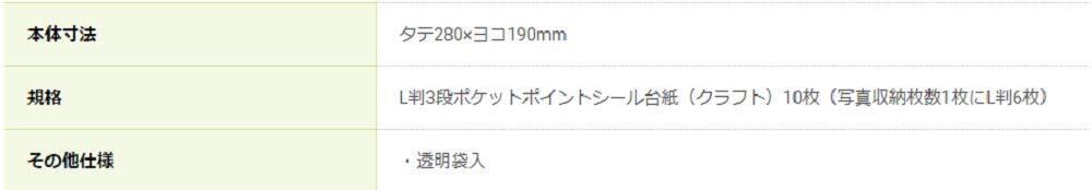規格:L判3段ポケットポイントシール台紙(クラフト)10枚(写真収納枚数1枚にL判6枚)