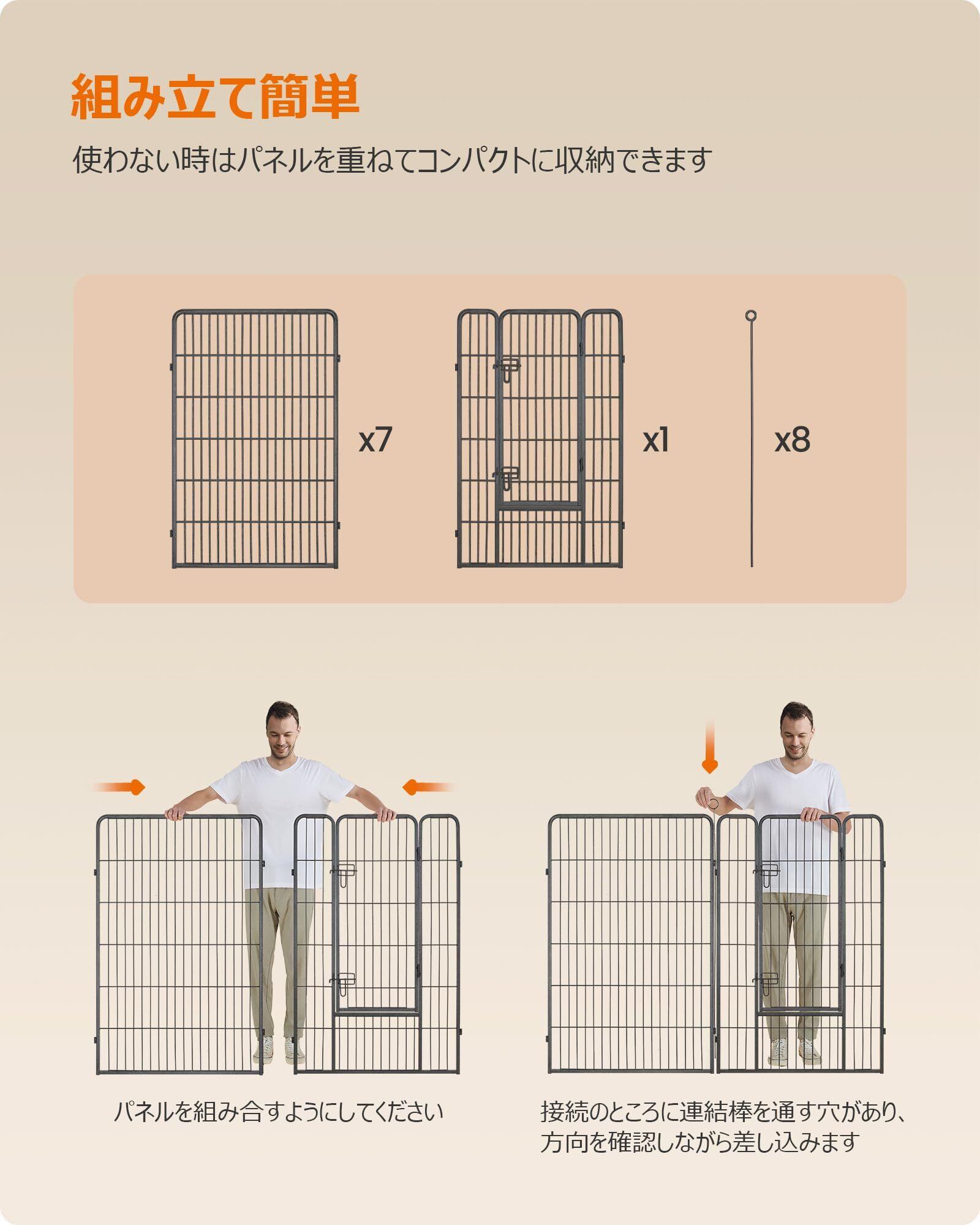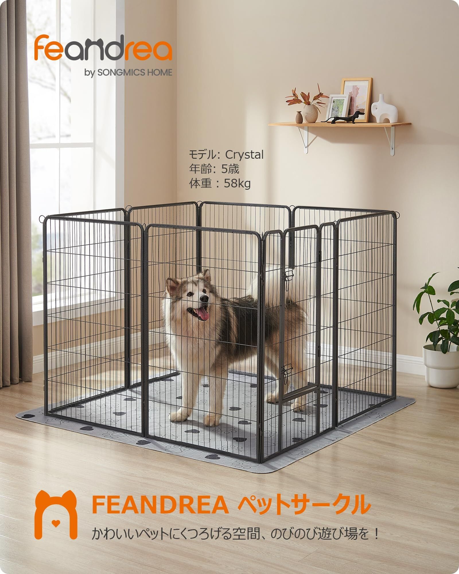 FEANDREA ペットサークル 高さ120cm 大型犬用 超大型犬用 パネル8枚 複数連結可能 スチール製 組立簡単 折り畳み式 犬ゲージ 全成長期使用可 室内外兼用 犬用サークル PPK012B01 ペットフェンス