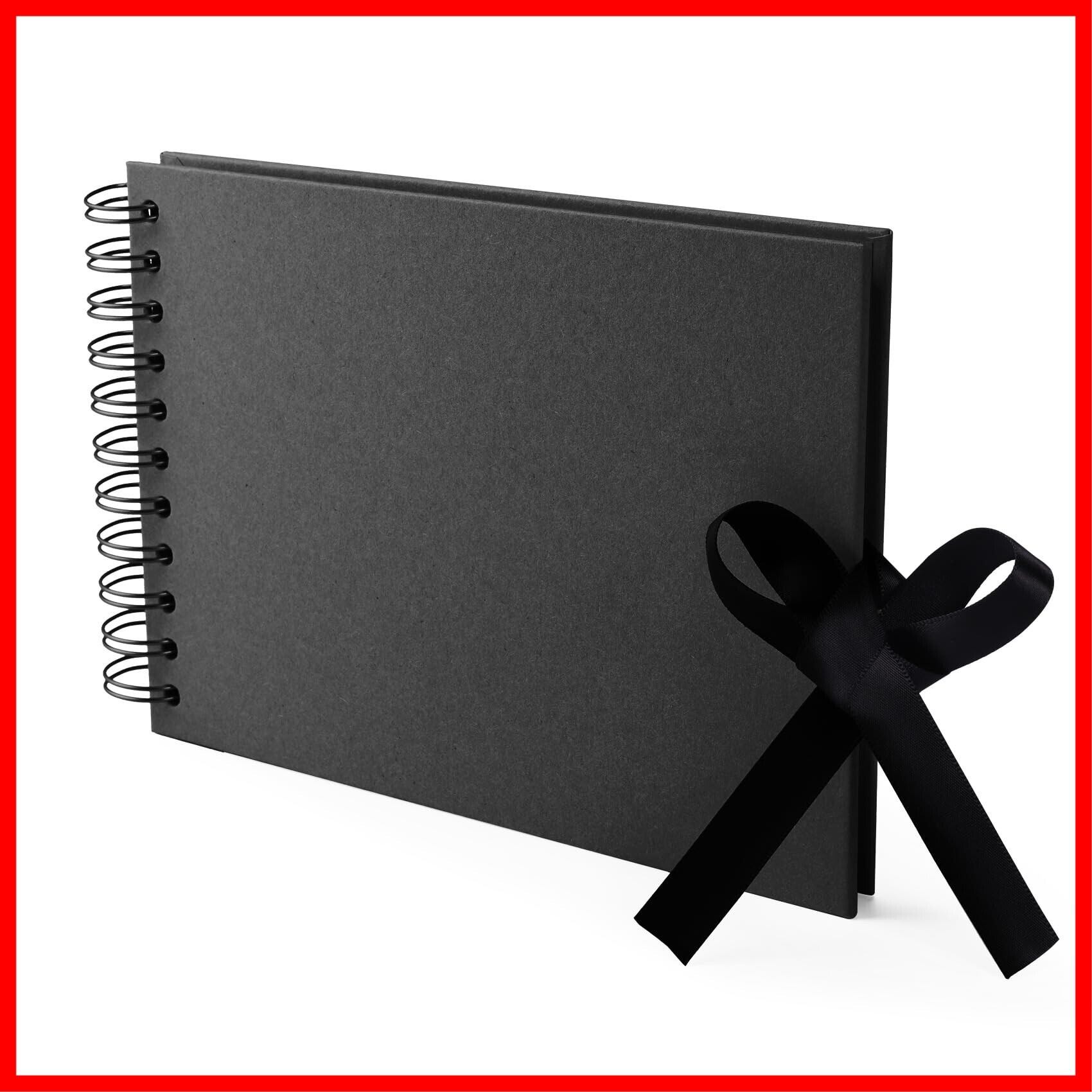 Annhua スクラップブック 手作り アルバム 貼るタイプ リング式 台紙30枚 A5 20.5CMx14CM メッセージアルバム フォトアルバム DIY 記念日 誕生日 プレゼント ブラック | hananoki