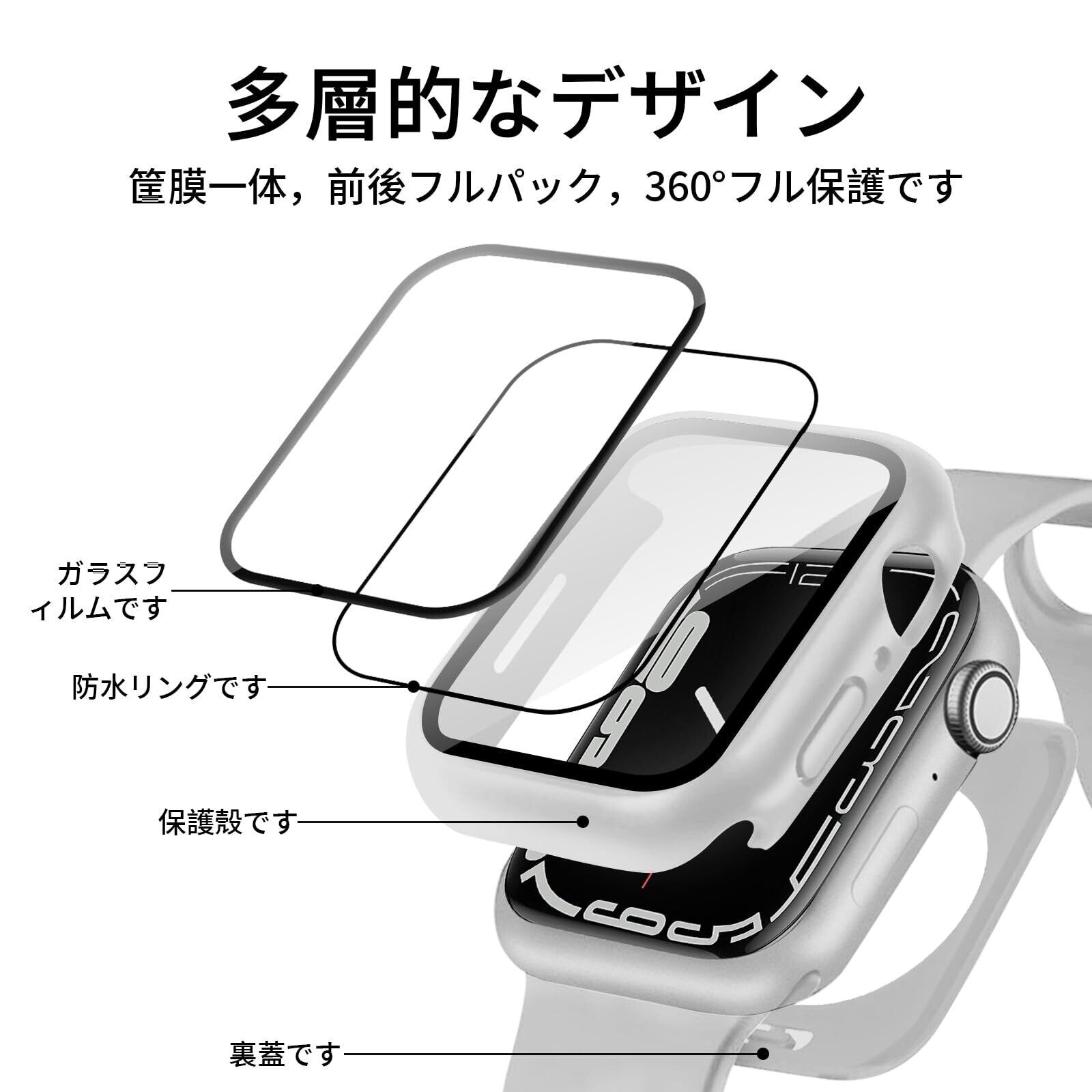 【全方位を守る軽量カバー】: 当製品は、アップルウォッチの各シリーズに対応した、しっかりとした保護を提供するカバーです。全面保護設計により、日常の使用による傷や衝撃から大切な時計をしっかり守ります。