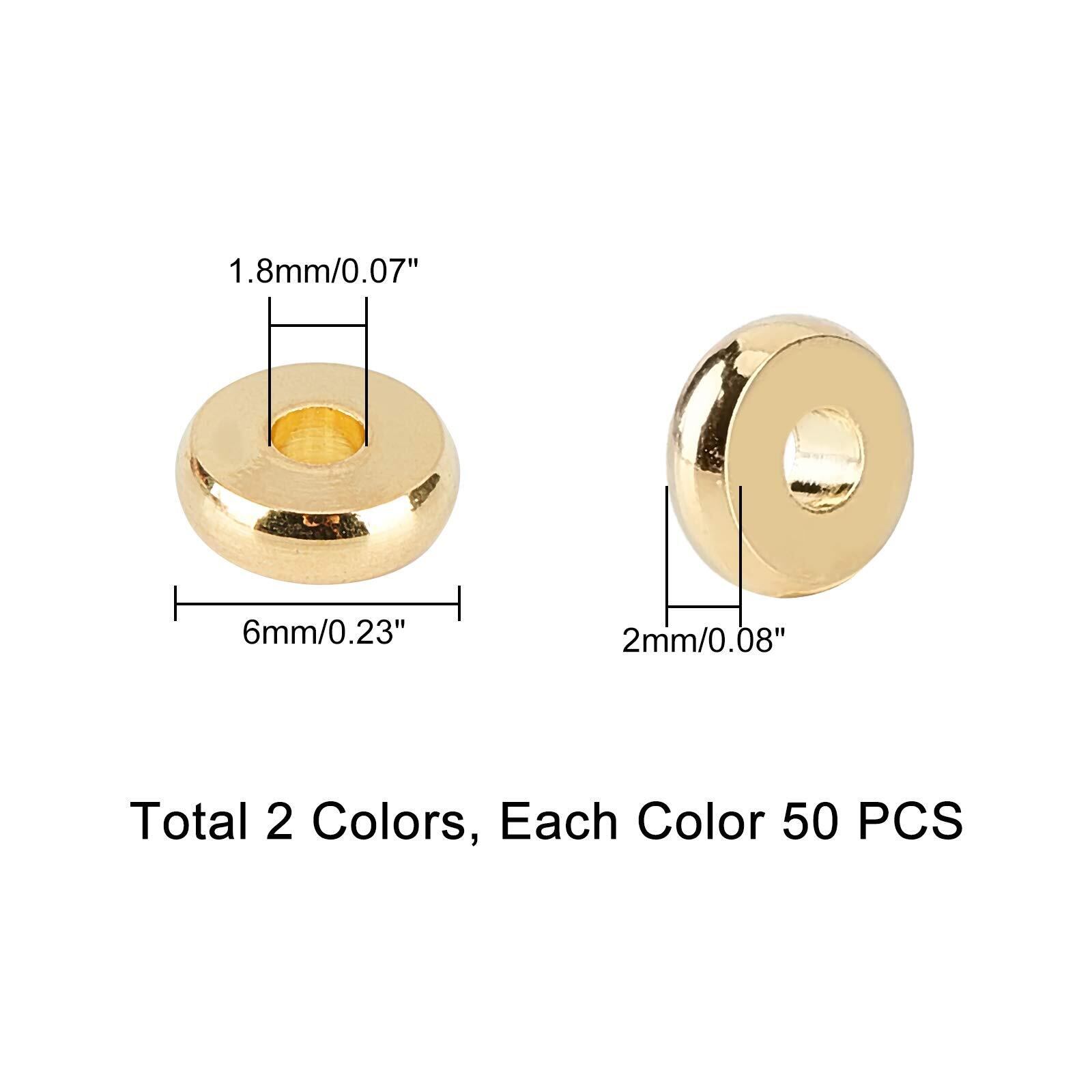 サイズ&入り数:ビーズ:直径約6mm、2mm厚さ、穴:1.8mm、2色、50個、合計100個;素材:304ステンレススチール;あなたの想像力でこれらのビーズをDIYのファッションアクセサリーに使うことができます!