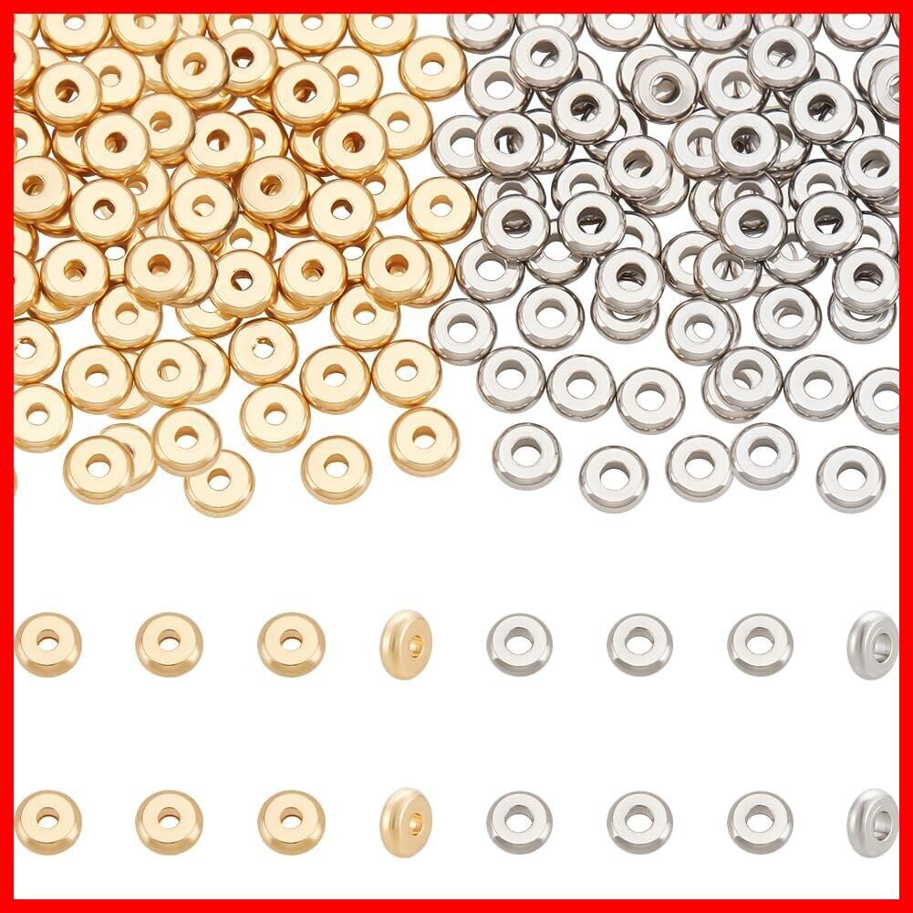 UNICRAFTALE 約100個 2色 6mm 円形 ロンデルビーズ 平型 ステンレス ビーズ フラットラウンドビーズ スペーサービーズ 金属ビーズ メタルビーズ ビーズチャームパーツ ブレスレットネックレス用 アクセサリーパーツ ジュエリー作り クラフト用品 手作り素材 DIY材料 | hananoki