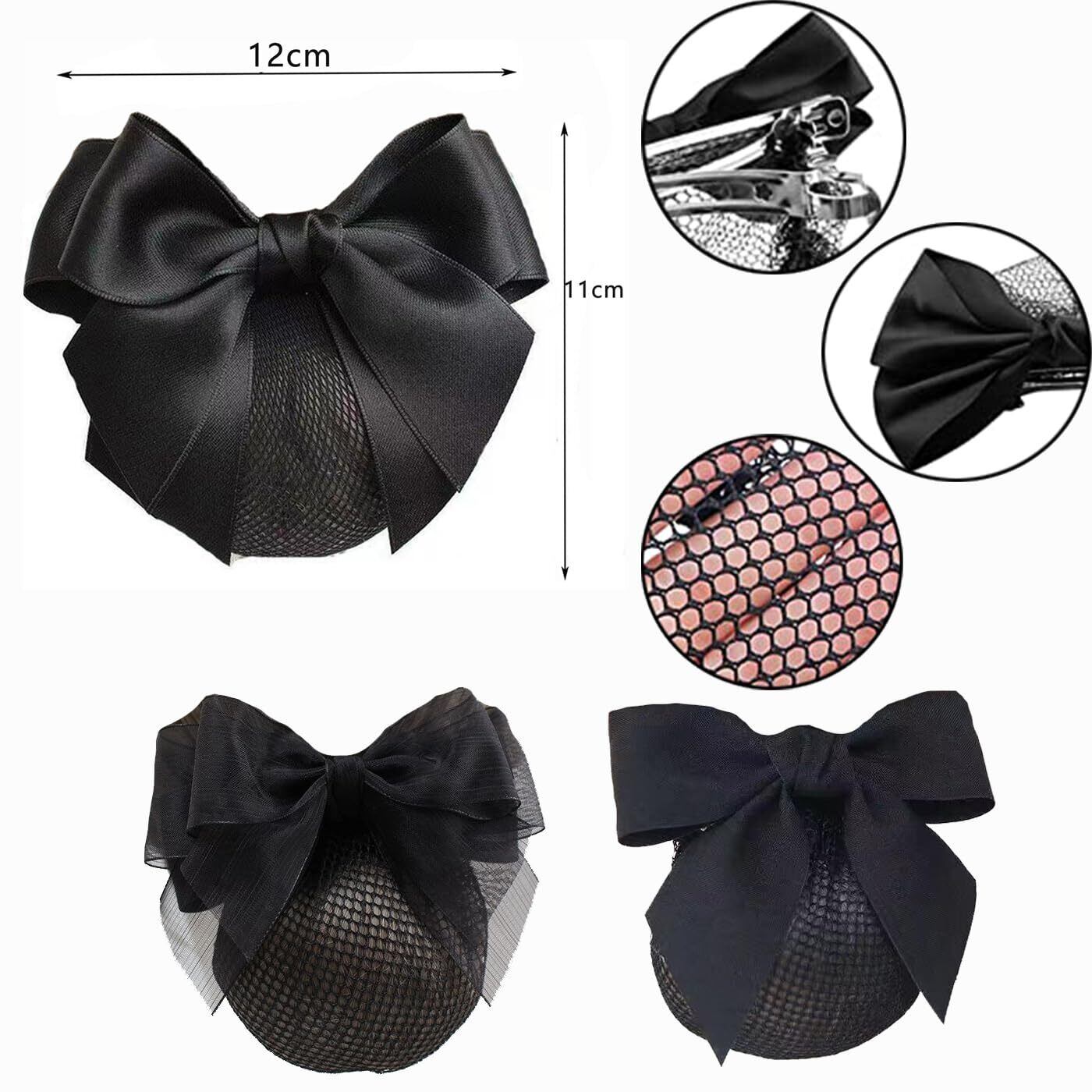 3個セット シニヨンネット バレッタ ネット付き,BetterJonny お団子ネットリボン 大きめヘアネット 髪ネットリボン レディースヘアアクセサリー 髪留め 黒