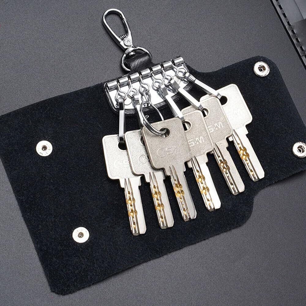 Sunny 6連キーホルダー PUレザーキーケース シンプル おしゃれ 男女兼用 ユニセックスキーケース 車 自転車 家等のキーを収納に便利 ホルダーリング付き ブラック