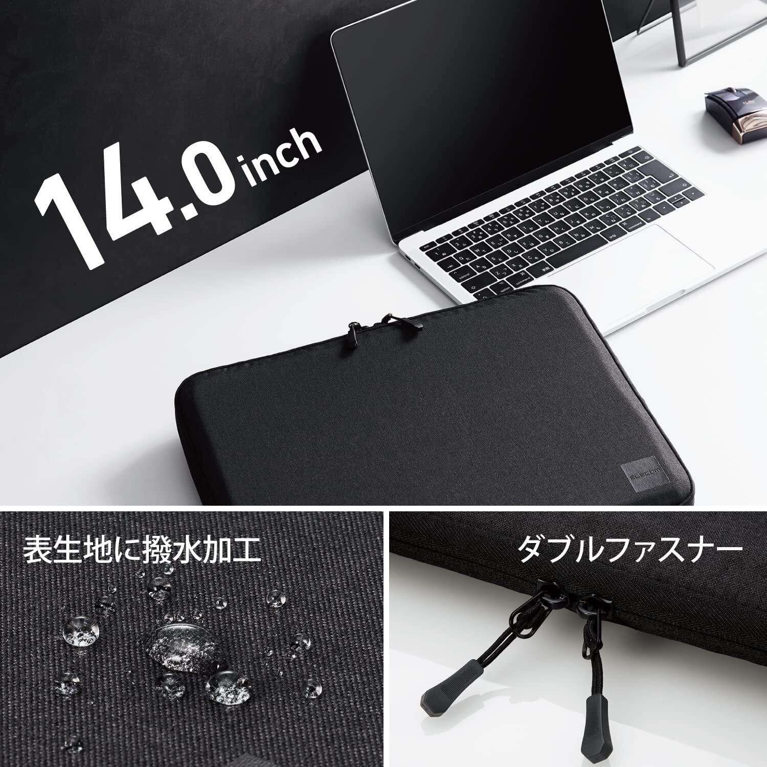 エレコム パソコンケース 14.0インチ MacBook Air M2/M1 13インチ MacBook Pro M2/M1 13~14インチ 360度保護 表面撥水加工 ダブルファスナー仕様 ブラック BM-IBSP14NBK | hananoki