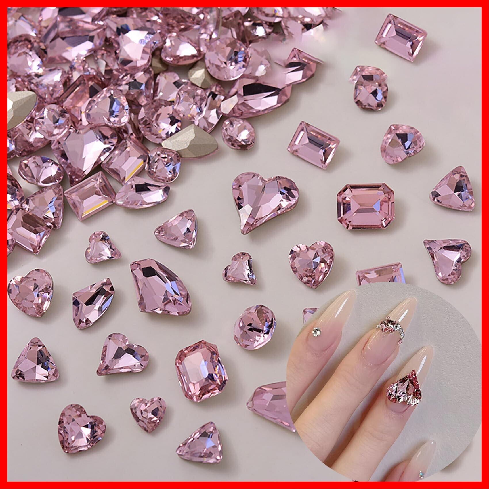 【豊富な種類で創造力を無限に!】: ピンクのハート型ストーンが30個、そしてオーロラストーンやアクリルストーン、ガラスストーンなど、合計20個の異なるデザインが揃っています。各パーツは、8mmと11mmのサイズで、バランスの取れた美しさを実現。異なる素材が生み出す輝きが、あなたの指先を魅力的に演出します。