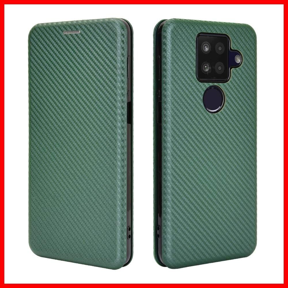 Pelanty for SHARP AQUOS Sense4 Plus ケース手帳型 炭素繊維調 SH-M16 携帯カバー 軽量 薄型 財布型 カード収納 シャップ アクオス Sense4プラス スマホケース マグネット ストラップ付き 耐衝撃 全面保護-グリーン | hananoki