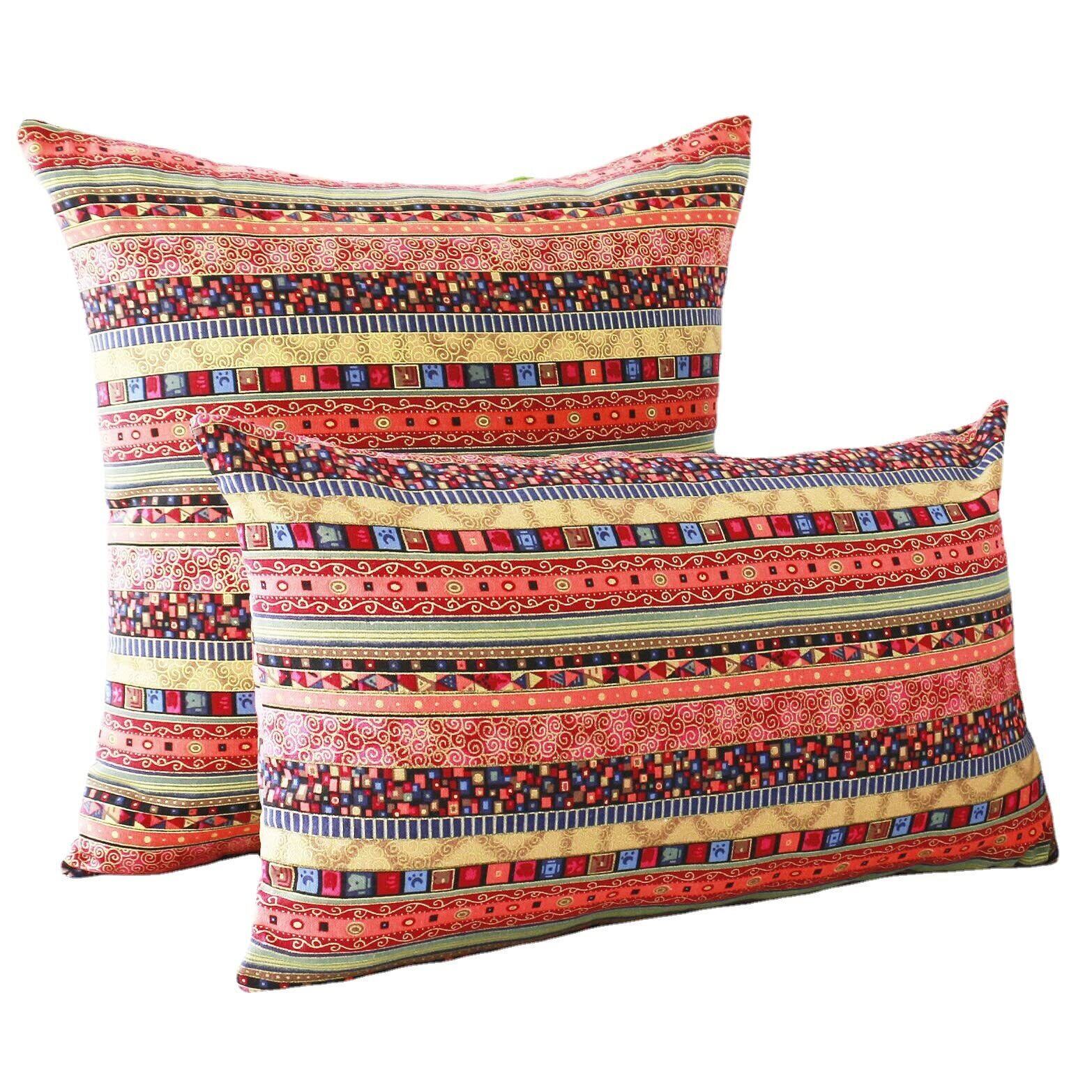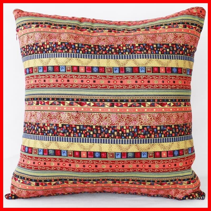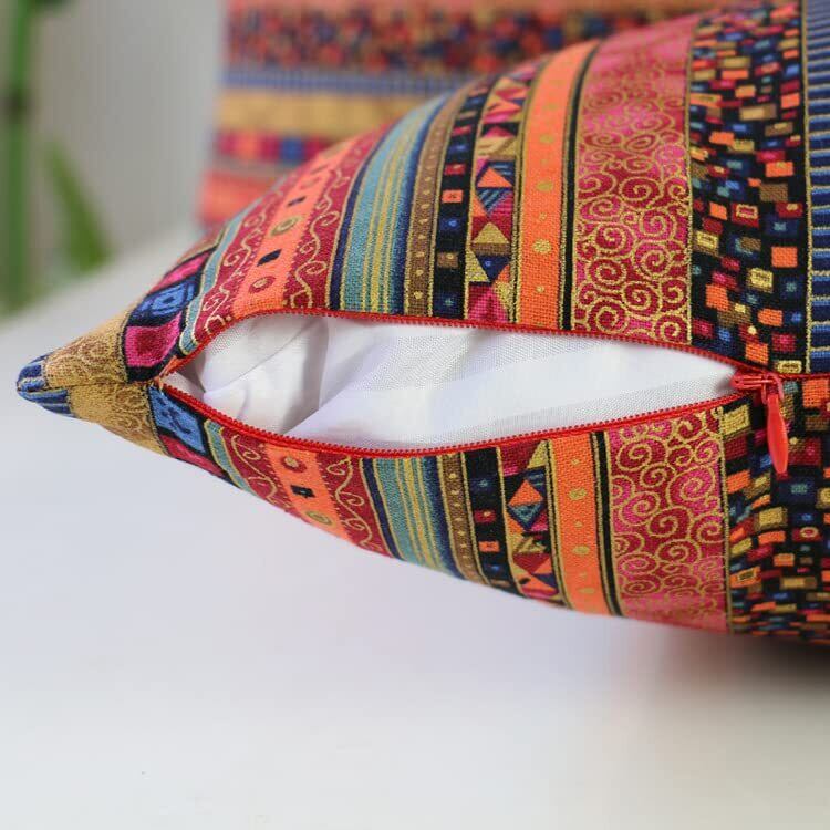 クッションカバー かわいい 2枚セット 45x45cm 綿麻 両面同柄 ボヘミアン エスニック オリエンタル アジアン バカンス ベッド インテリア リビングルーム アクセント (45x45, レッド2)