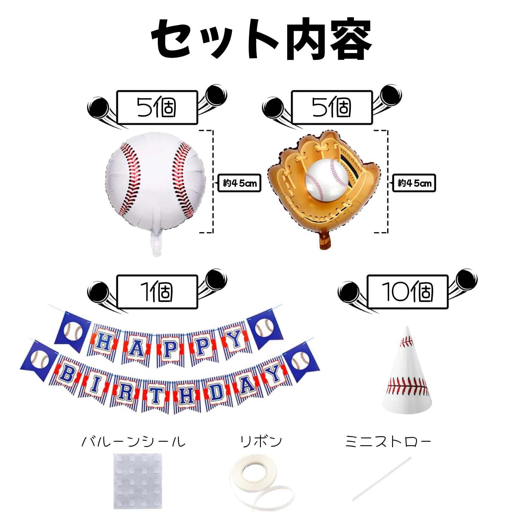 【サプライズ感をアップ!】: 野球のデザインは、主役であるお子様に喜ばれること間違いなし!明るい色合いと可愛らしいイラストが、パーティーを盛り上げ、ゲストの心を掴むポイントです。飾り付けが簡単で、設置もスムーズに行えます。