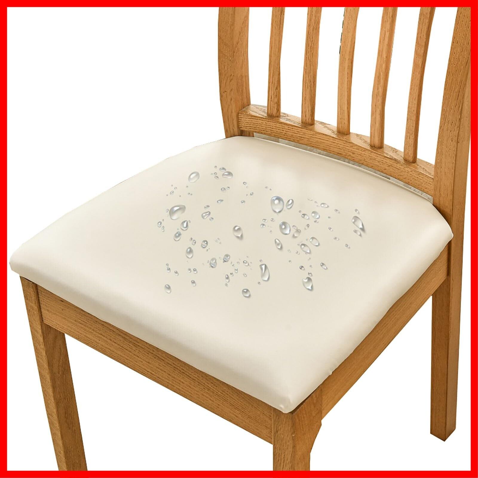 PU 座面カバー, 座面カバー 6枚 椅子カバー 座面 防水 耐久性 取り外し可能 ストレッチ 座面カバー ダイニングチェア用-6枚-クリーム色の白