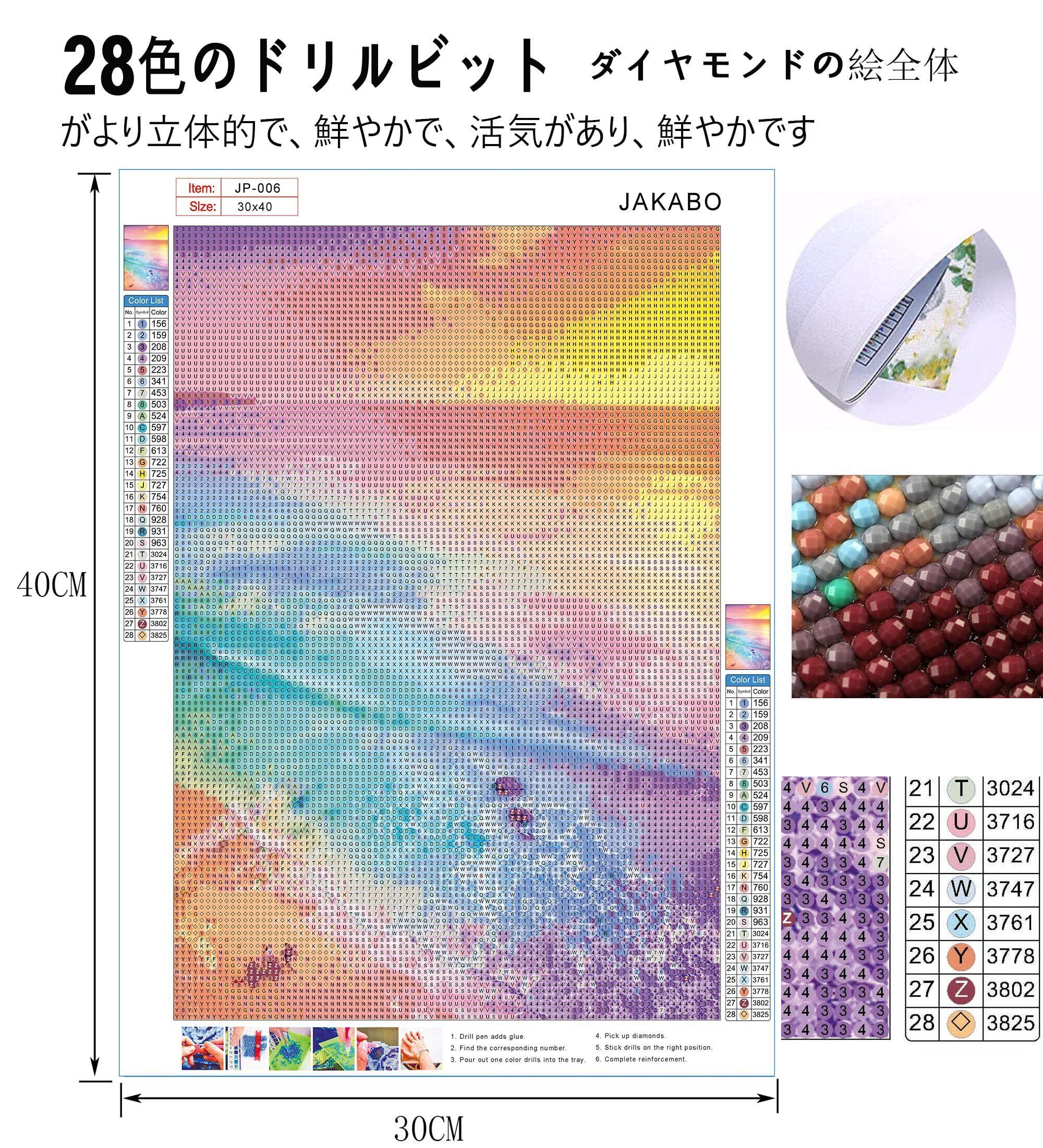 ダイヤモンドアート キット ダイアモンドビーズ絵画キット DIY・手作り絵画手芸キット 5D モザイクアート ダイヤモンド塗装 全面貼り付けタイプ… ◆DIY 作り方手順: ① キャンバスの下の表を参照して、対応するダイヤモンドを見つけます。。 ②トレーに貼り付けるビーズを入れて、 ビーズはなるべく整列させてください。 ③ピンクのグルーをペン先に付けます。(グルーのフィルムを剝がしてお使いください。) ④ペン先にビーズをつけます。 ⑤対応するカラーコードに従って、対応するキャンバスにダイヤモンドを貼り付けます。。 ⑥ 手順を繰り返します。 完了したら、本または手でダイヤモンドを押して、より頑丈にします。 包装内容明細書 :40x30cm キャンバス、丸ビーズ、1 x ダイヤモンドペン、1 x ビーズのトレー、1 x ピンクのグルー