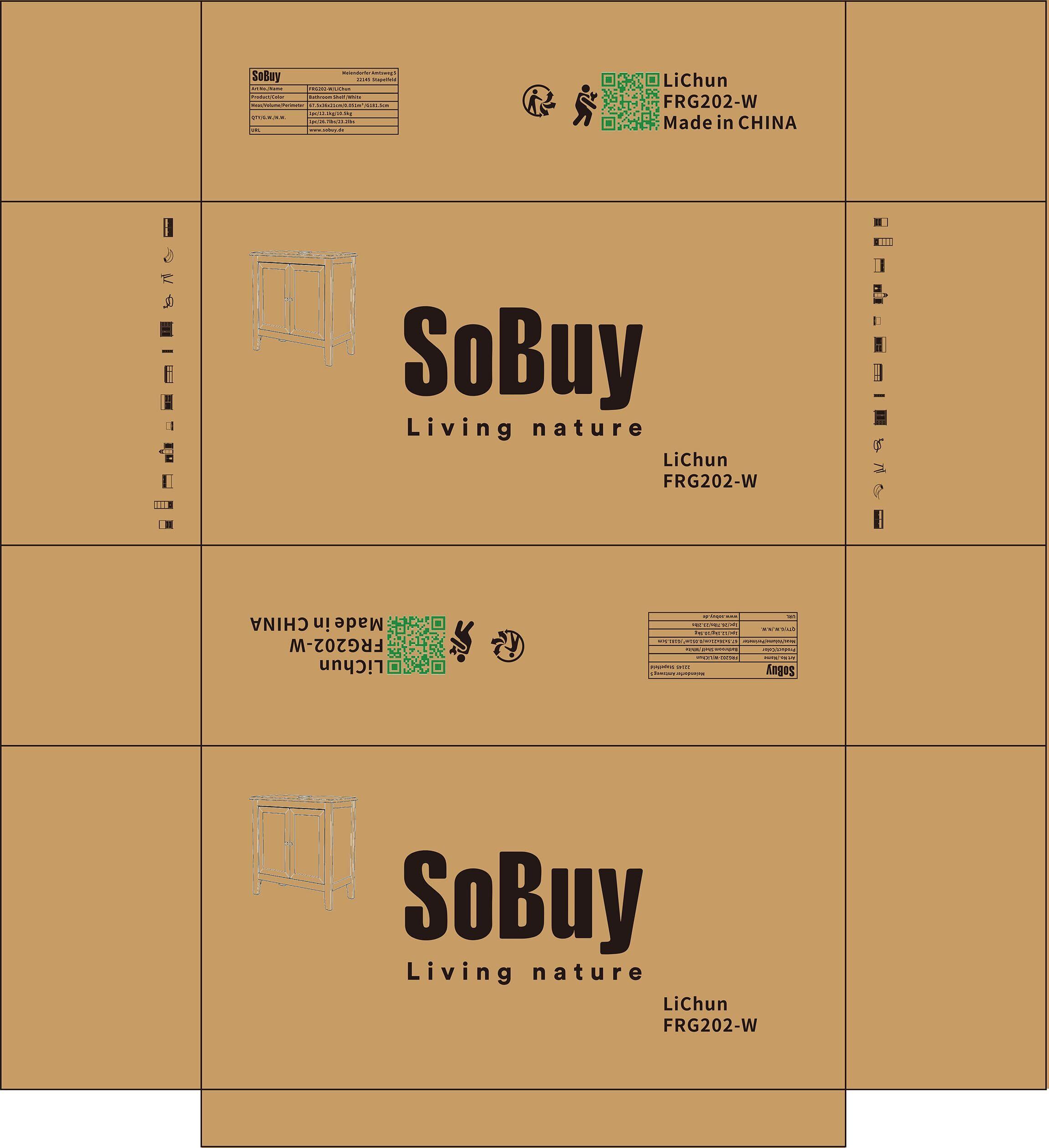 SoBuy 洗面台 洗面化粧台 収納 洗面所収納キャビネット おしゃれ 幅60*奥行30*高さ62cm キャビネット 洗面所収納棚 洗面ボウル下のキャビネット収納 洗面台下収納 洗面所 収納 (FRG202-W/洗面ボールは付属されてない!別途でご購入ください)