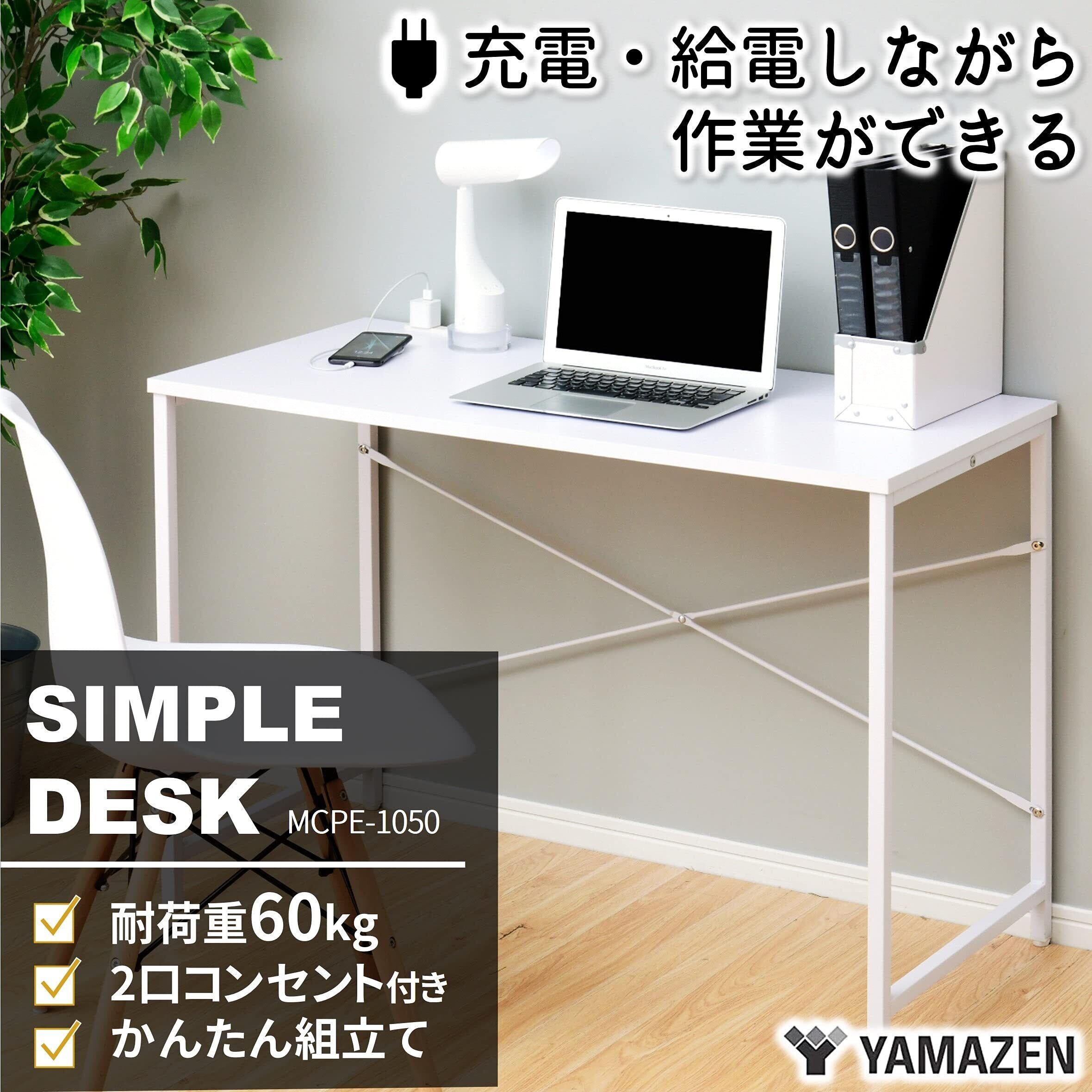 山善(YAMAZEN) デスク 幅100cm 2口コンセント 耐荷重60kg 傷・汚れ・水分・熱に強い天板 アジャスター付き 奥行49×高さ70.5cm シンプル パソコンデスク 勉強机 組立品 ホワイト/サンドホワイト MCPE-1050(OWSWH) テレワーク