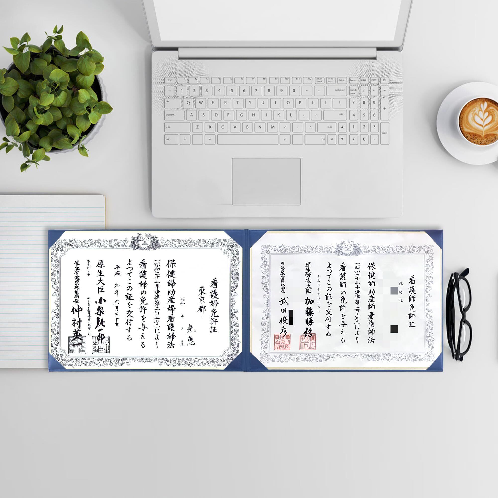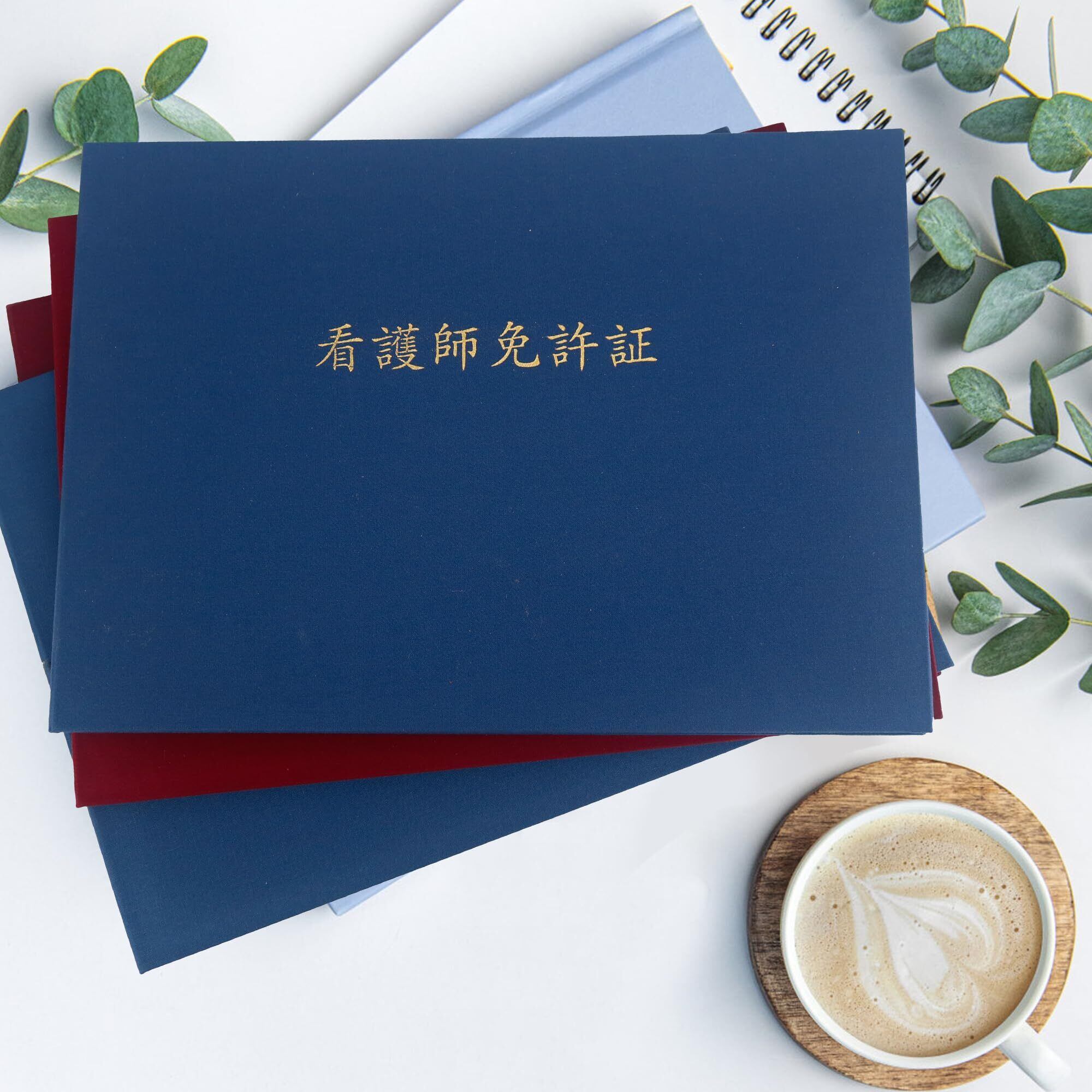GraduationMall 看護師免許証・印刷 証書ファイル 布 紺 B4 二枚用