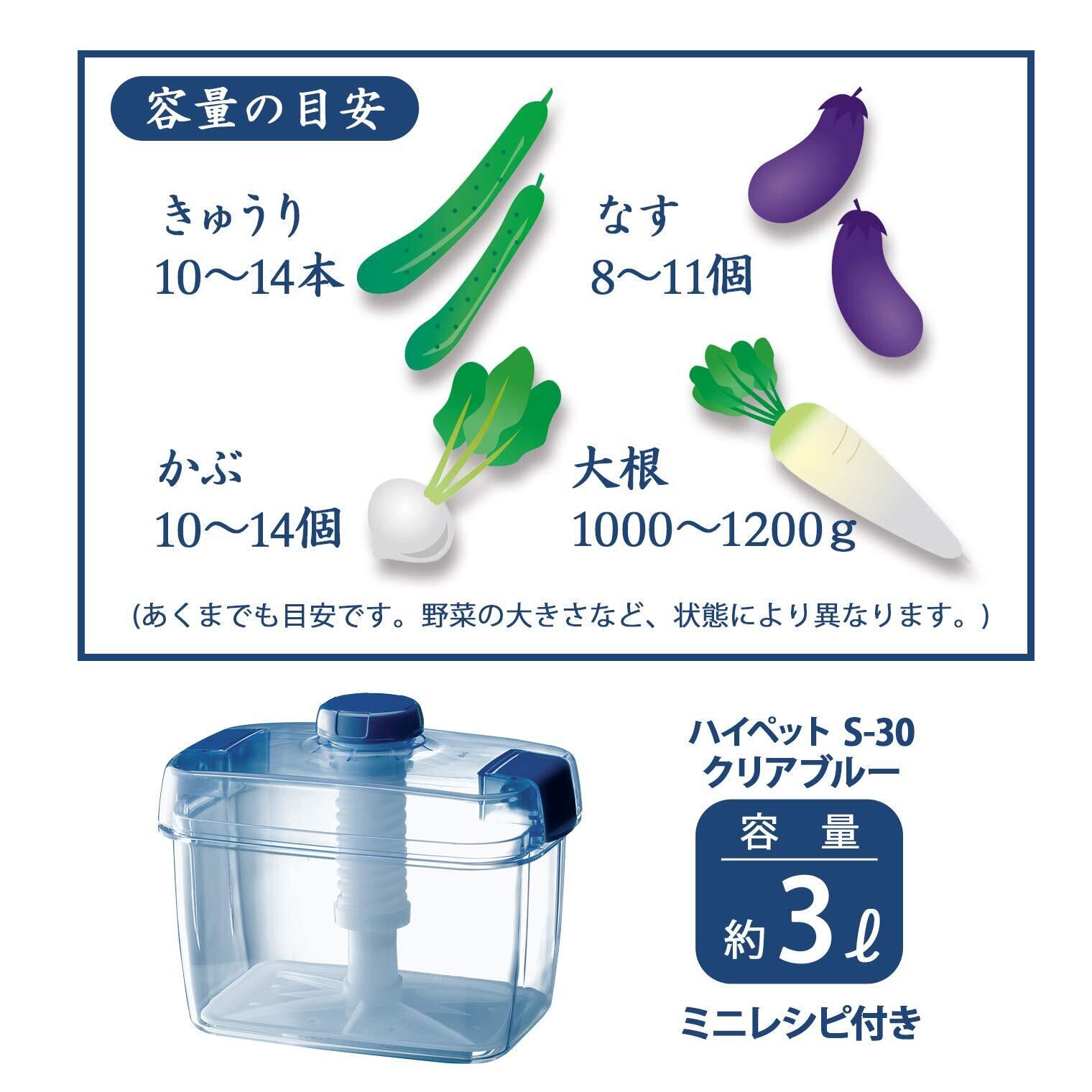 リス 即席漬物容器 角型 クリアブルー 3L ハイペット レシピ付き 日本製 S-30
