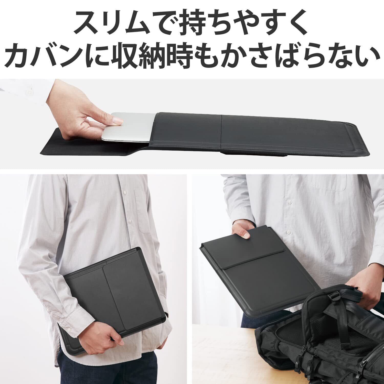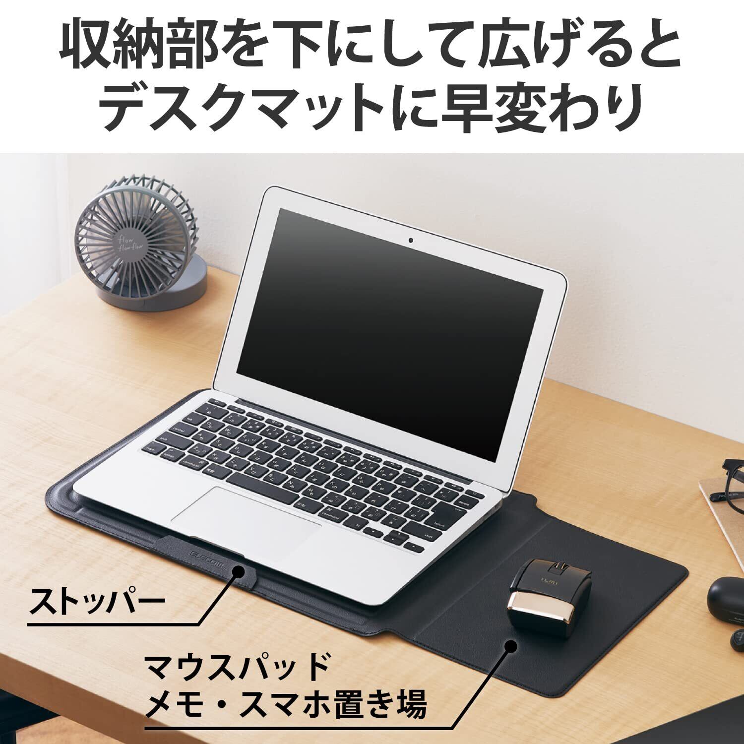 [エレコム パソコンケース PCケース 12インチ 薄型フラップ スリーブ型 ソフトレザー パソコンスタンド一体型 マウスパッド一体型 ブラック BM-IBSVS02BK]