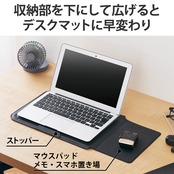 ■フラップ部分は、マウスパッドやメモ・スマホ置き場としてご使用いただけます。