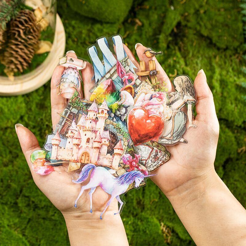120枚 シール フレークシール コラージュ 素材 ペーパー 素材紙 レースユートピアステッカーレトロアリス・ストーリー 海外韓国 シール帳 ,メモ用紙ノート素材、日記装飾用品 (ailisigushi)