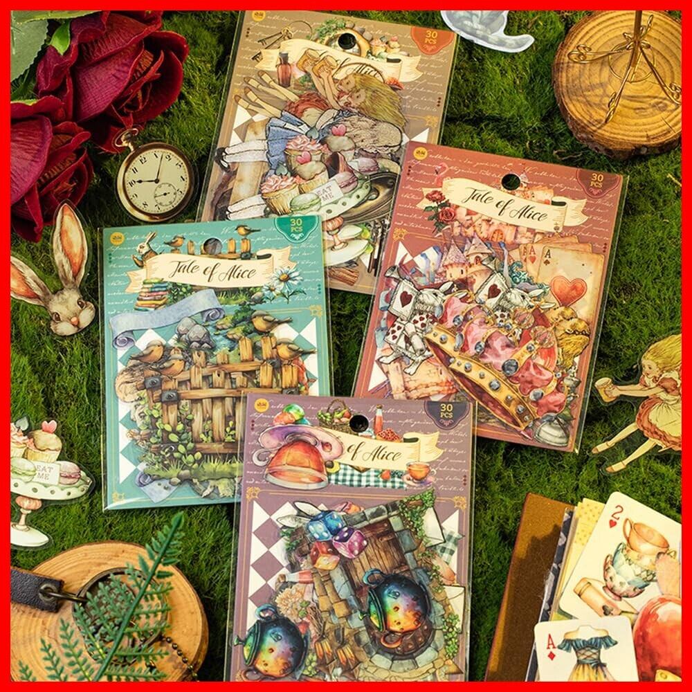 [120枚 シール フレークシール コラージュ 素材 ペーパー 素材紙 レースユートピアステッカーレトロアリス・ストーリー 海外韓国 シール帳,メモ用紙ノート素材、日記装飾用品 (ailisigushi)]