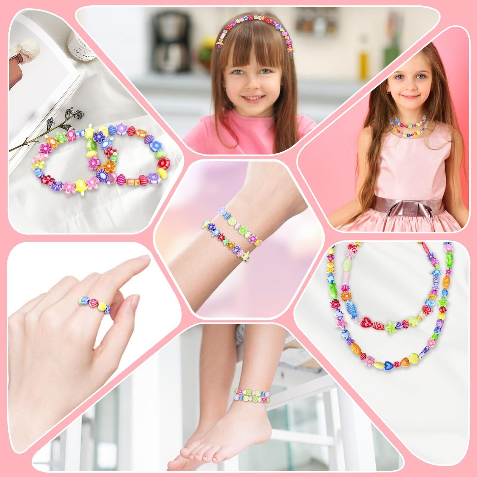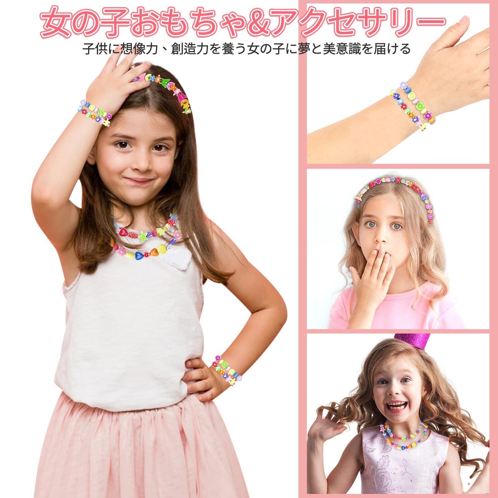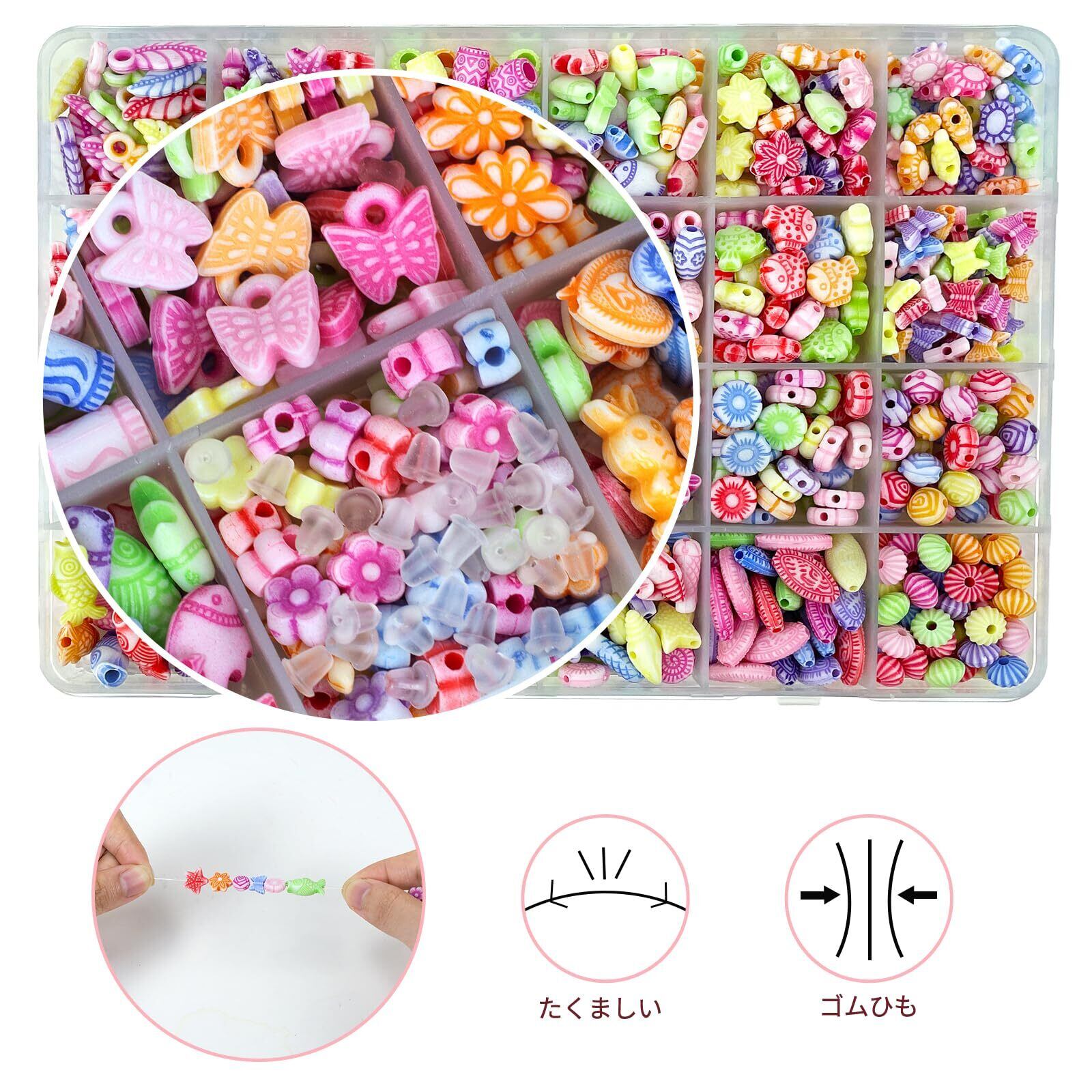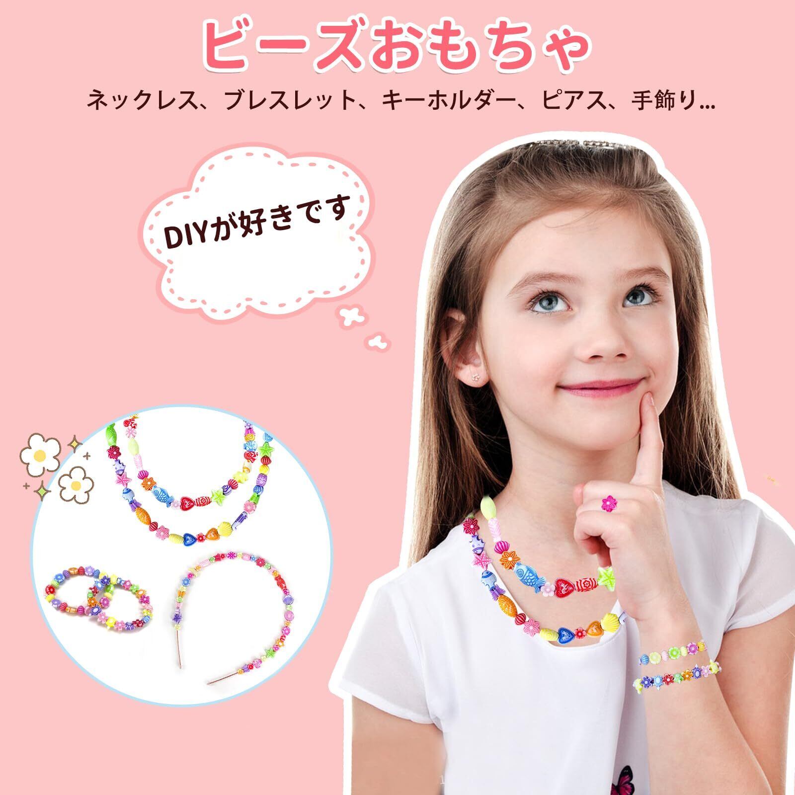 【豊富な女の子 おもちゃ】ビーズ 手芸 に用いられる小さな飾り玉。アクリル製で、様々な形があり、色も多様、つないで使います。ネックレス、ブレスレット、キーホルダー、ピアス、手飾りなどに最適です。おしゃれ心が芽生えだす女の子にとって魅力的な、かわいいオリジナルのアクセサリーを作りましょう!6歳以上の子供に適用しています。