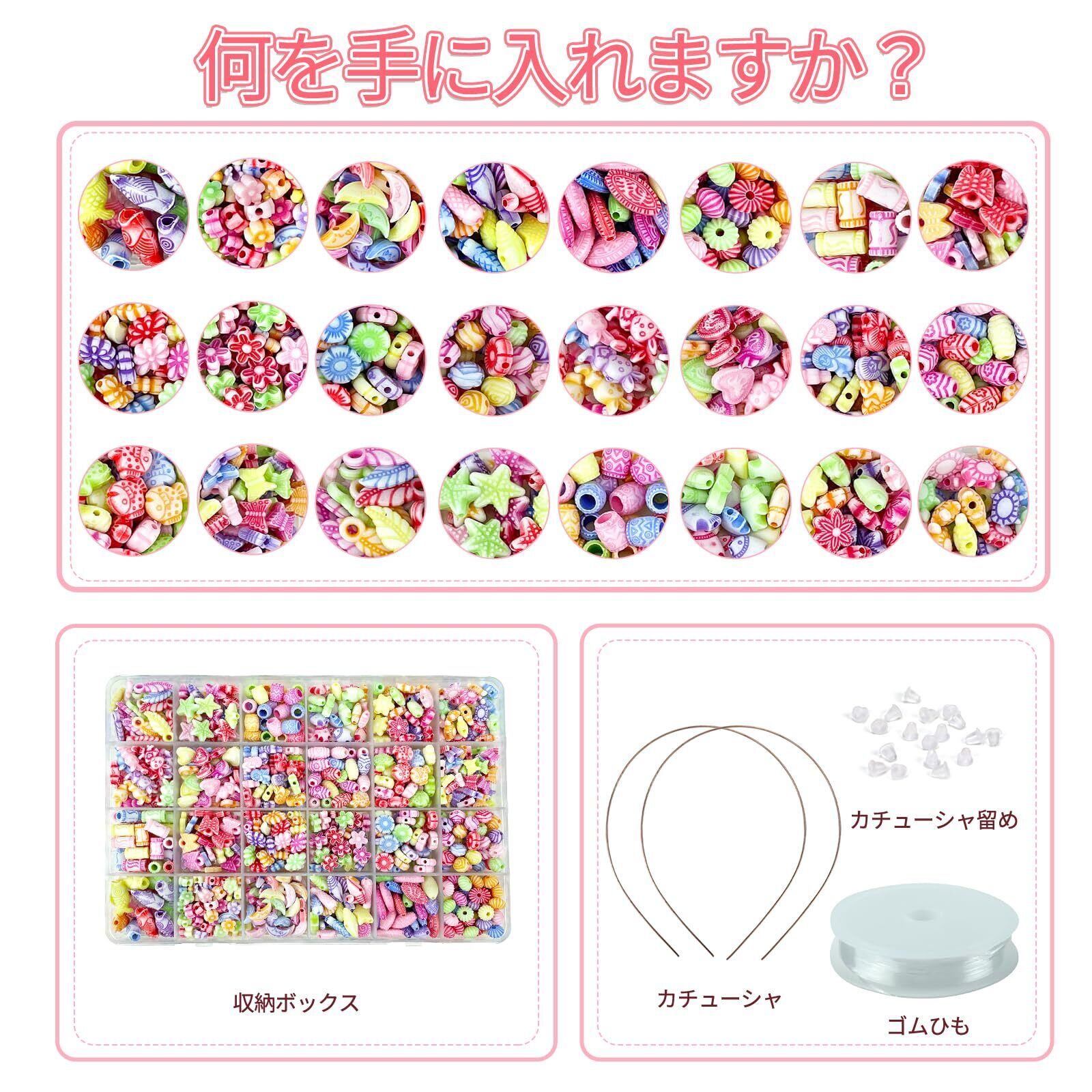 【人気なプレゼント】初心者でも自分のオリジナル作品が簡単に出来るビーズセットです。カチューシャのストッパーはついています。一緒にかわいいオリジナルアクセサリーを作り、楽しい親子時間を過ごせます。お祭り、縁日、誕生会、学校のイベント、お祝い事、クリスマスなど様々なシーンで大活躍!