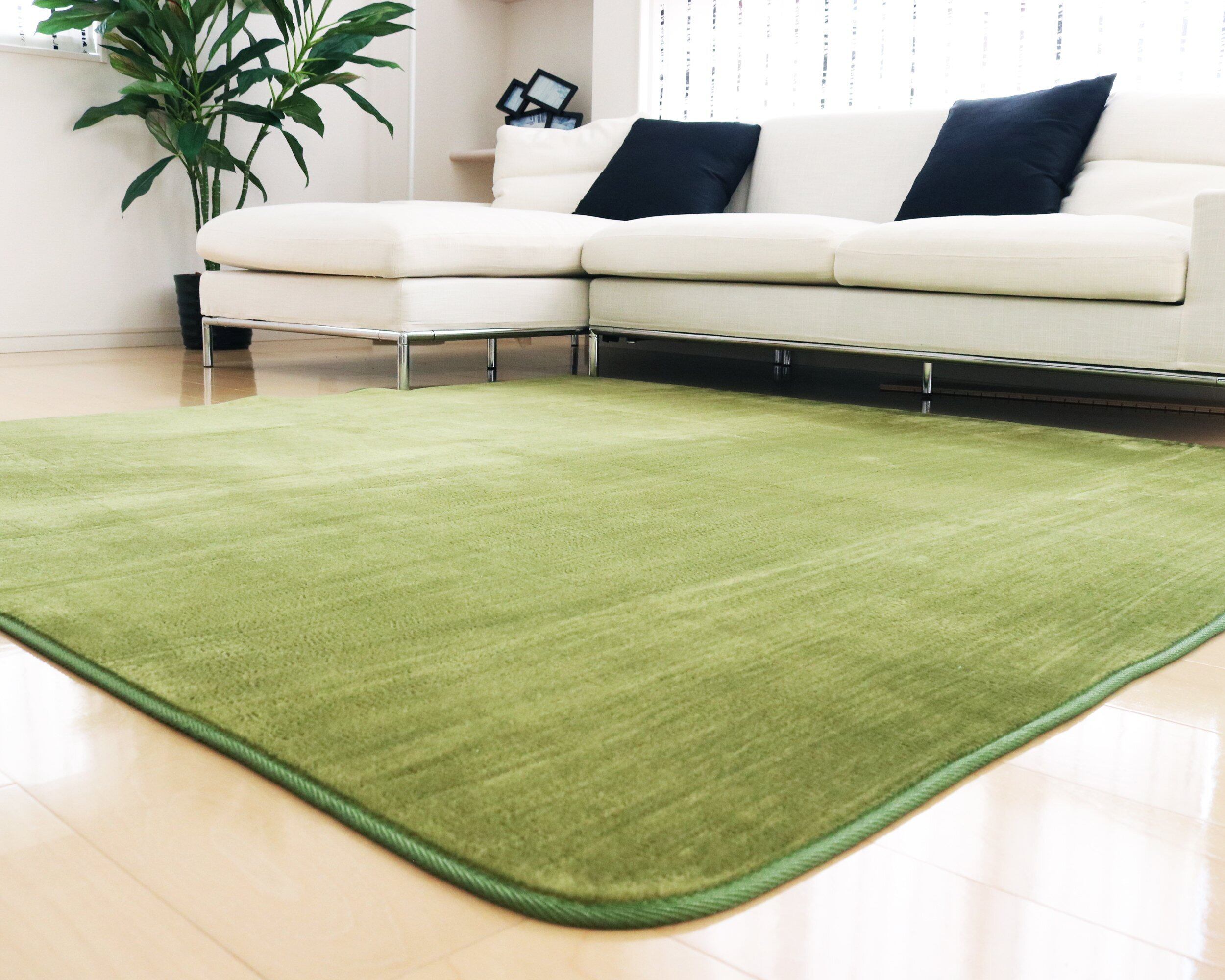 フリーリー カーペット ラグ 滑り止め付 選べる28 200×250cm 約3畳 軽量設計 超高密度マイクロファイバー生地使用 丸洗いOK オールシーズン快適に使用 無地・グリーン | hananoki