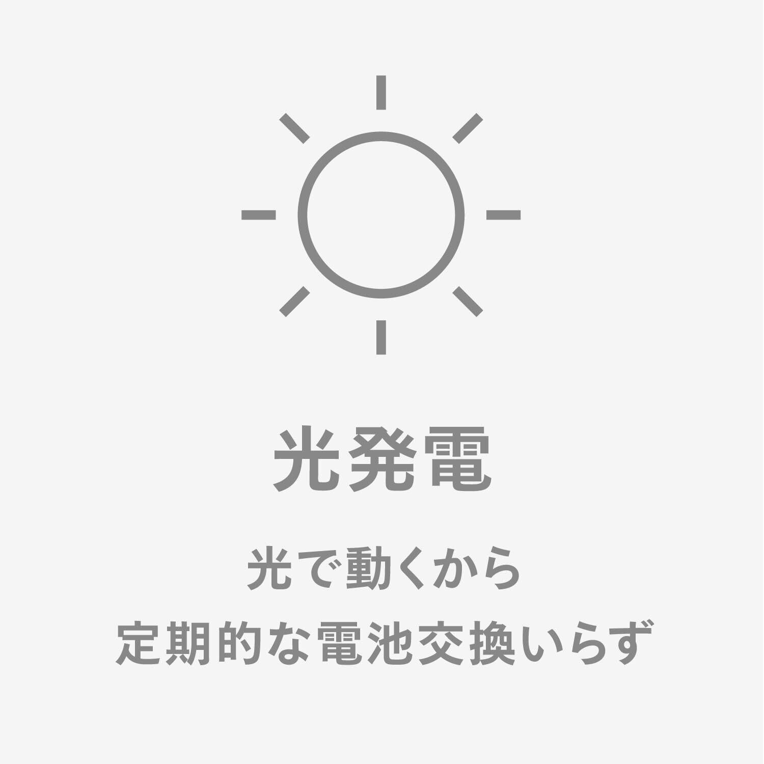 光発電: 光で発電し、充電することで動き続けるから、定期的な電池交換いらず