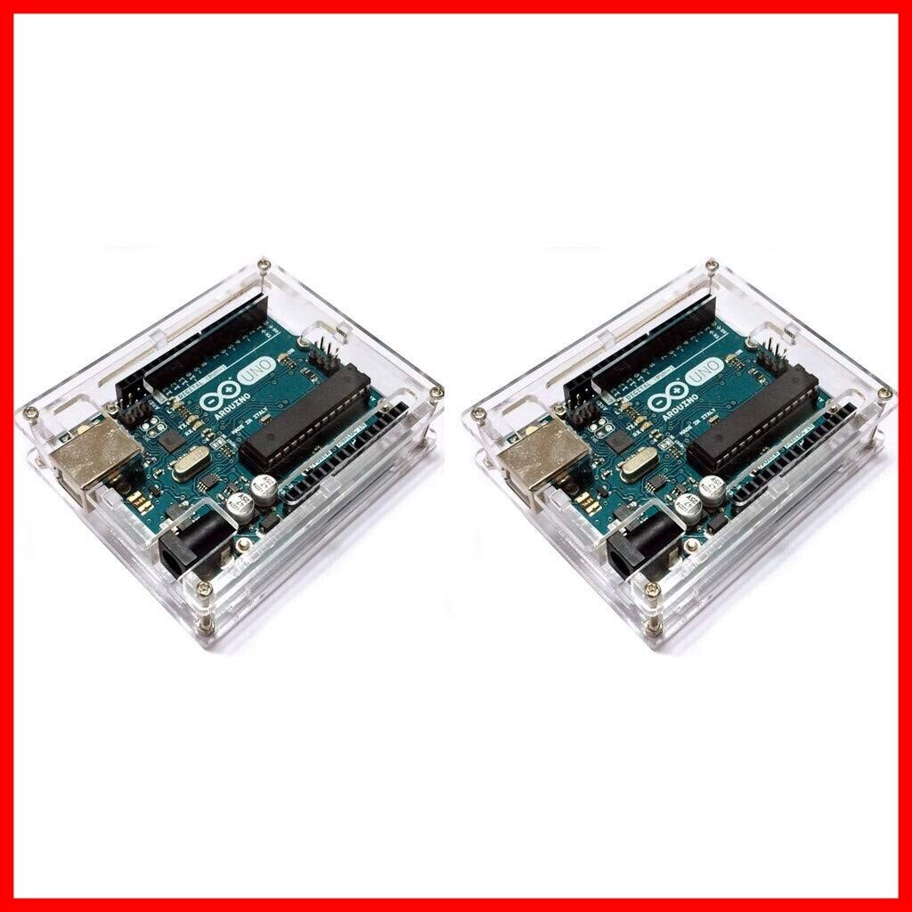 [2個セット Arduino用 UNO R3向け 透明 アクリル エンクロージャー ケース シェル ボックス 薄型 コンパクト(2個セット)]