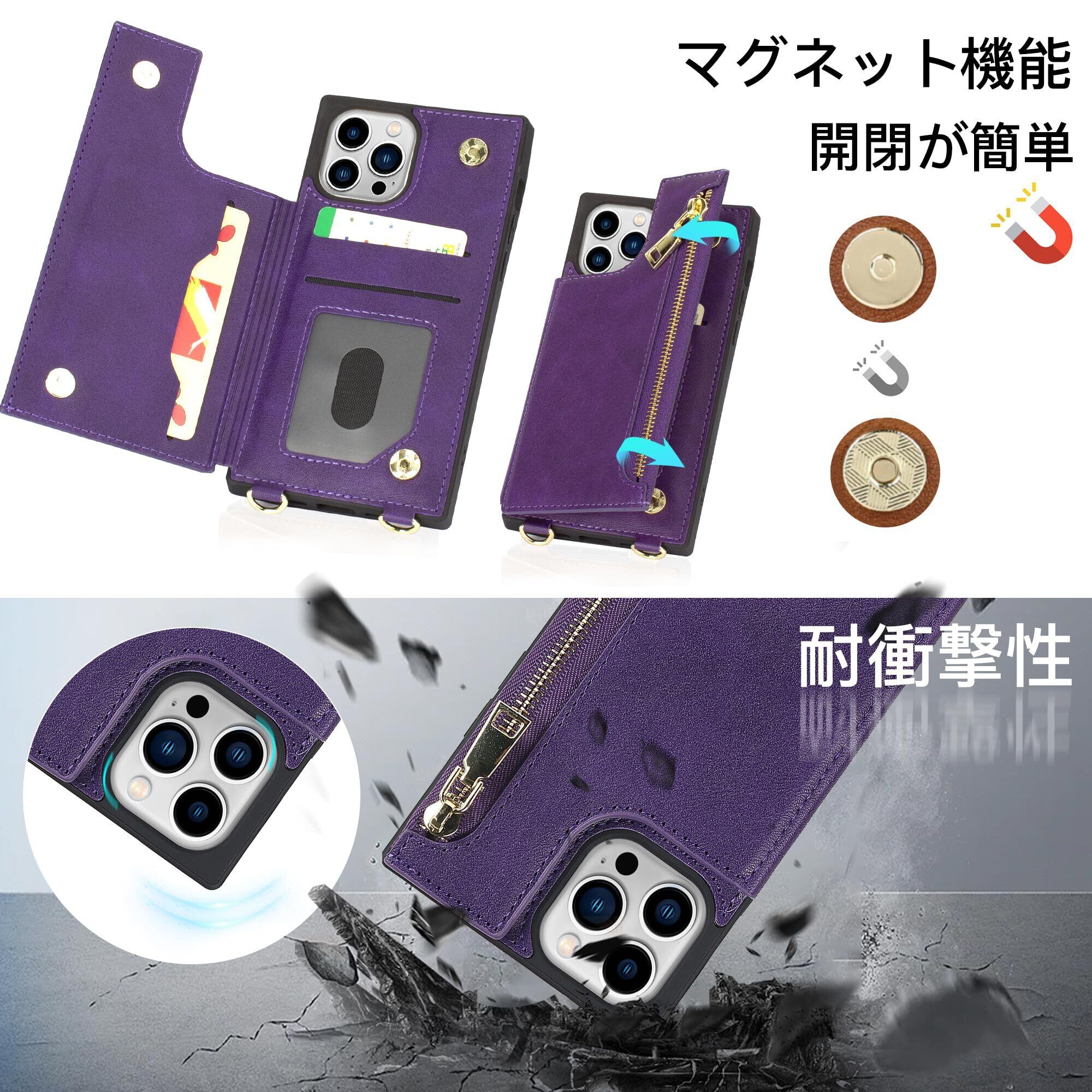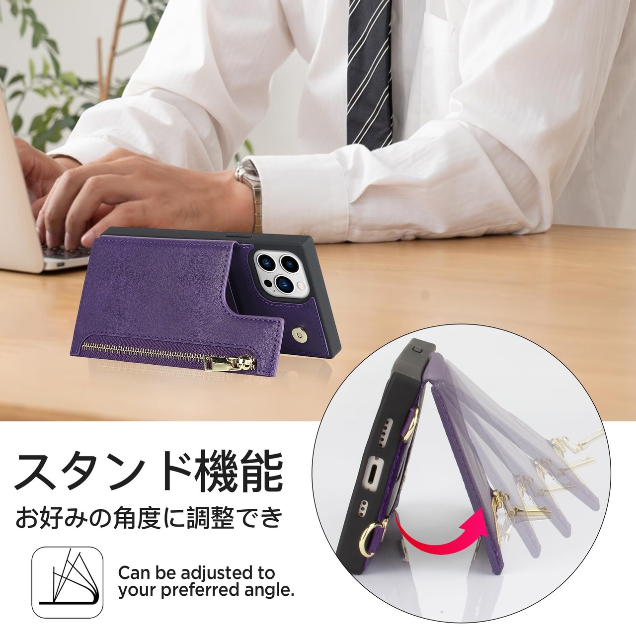 [iPhone 11 Pro Max ケース 手帳型 背面収納 ショルダー パープル]