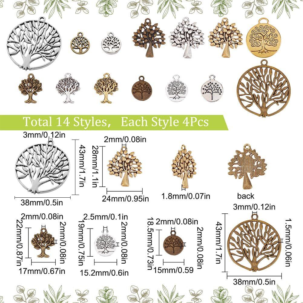 1ボックス56個の14スタイルツリーチャーム: 56つのスタイルの合計14個の生命の木チャームは、より多くのDIYインスピレーションをもたらします。 それは空虚な魅力なのか, 平面チャームまたは立体チャーム, 日常生活で非常に実用的です.