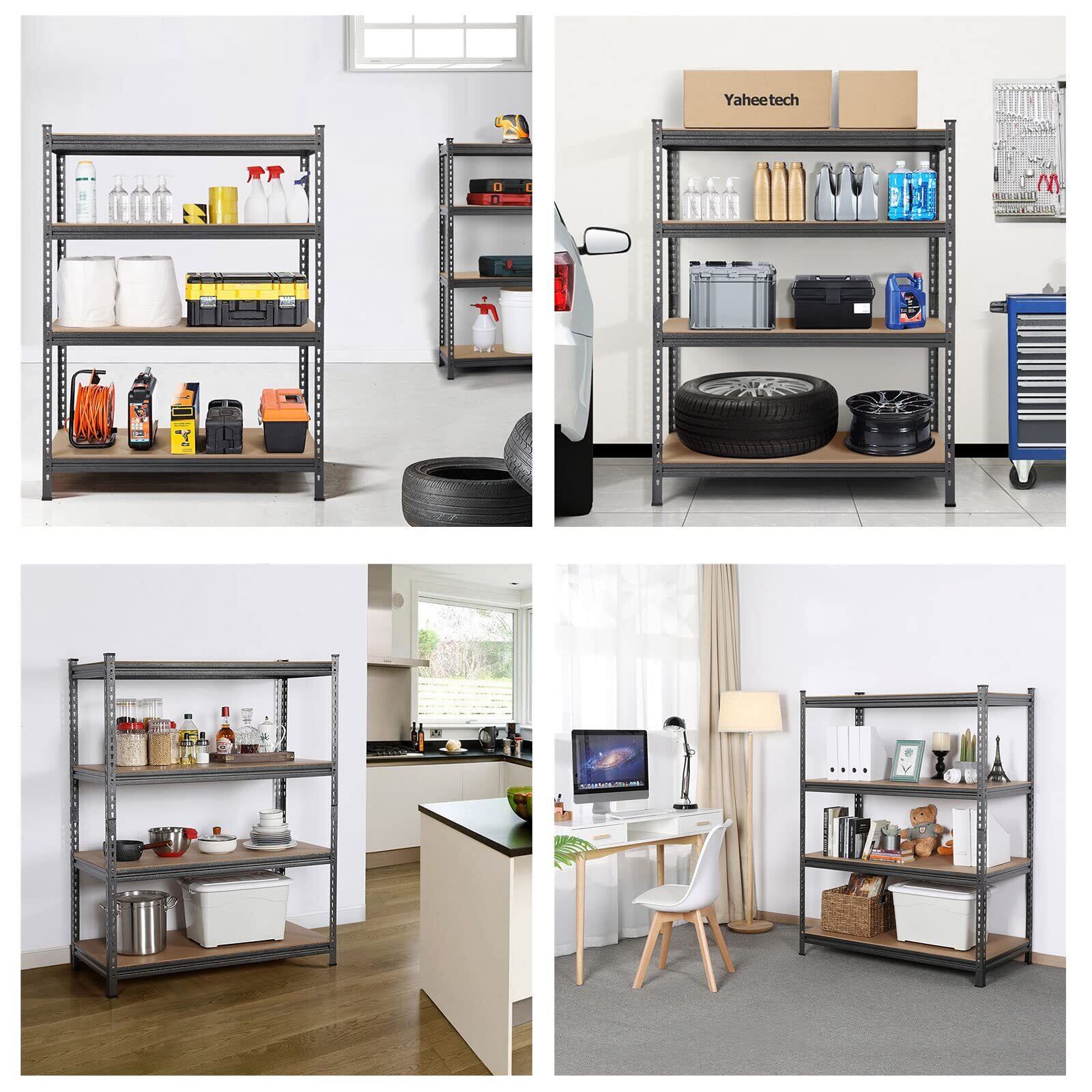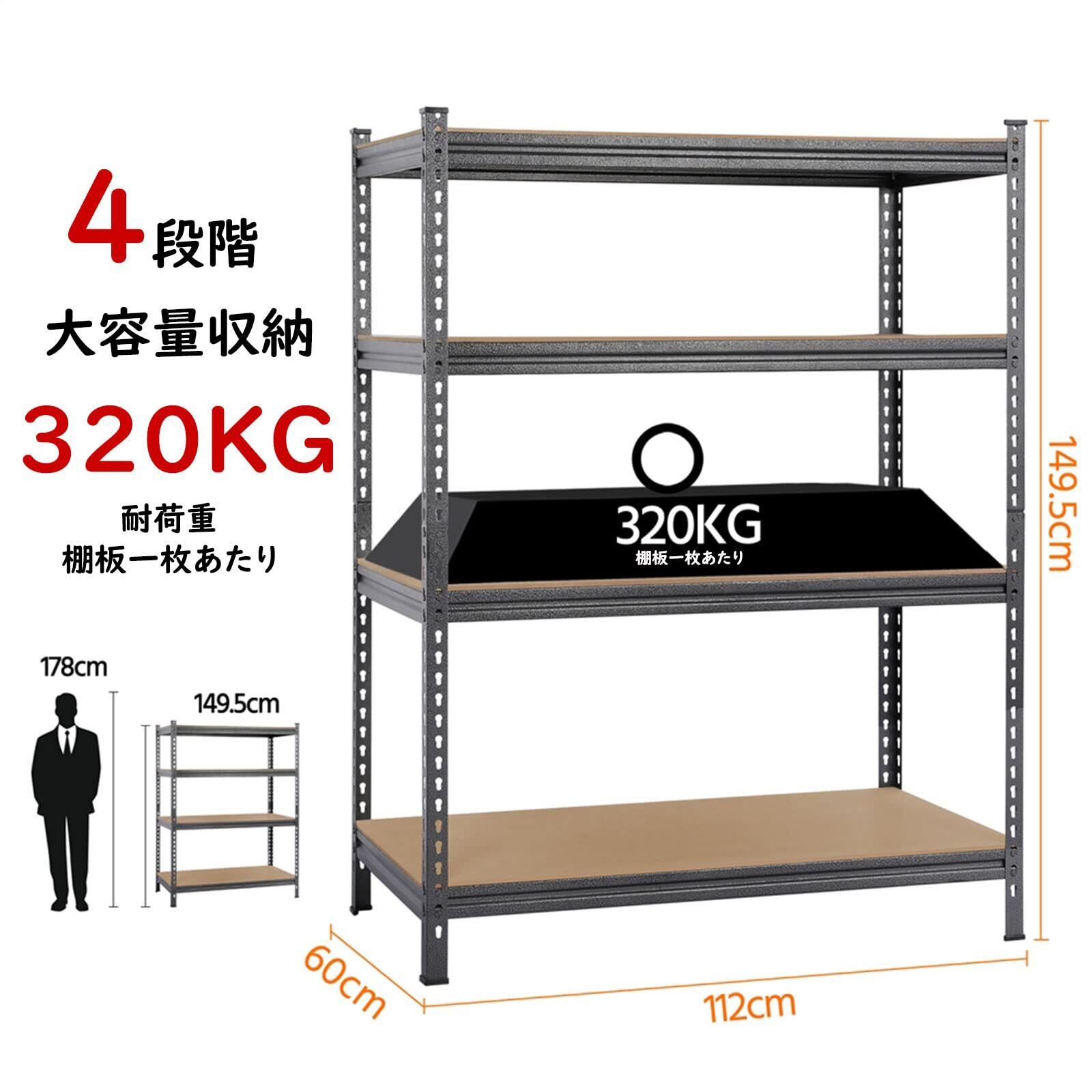 Yaheetech スチールラック キッチンラック 4段 幅112 奥行60 高さ150 メタルラック オープンシェルフ 高さ調整可能 自由に組み合わせ 収納棚 耐荷重320Kg ディスプレイ コーナーラック 防サビ加工 ネジなし スチールシェルフ メタルシェルフ 112×60×150cm オープンラック 高耐荷重 キッチン 物置 作業台 倉庫 ガレージ (ブラック) | hananoki