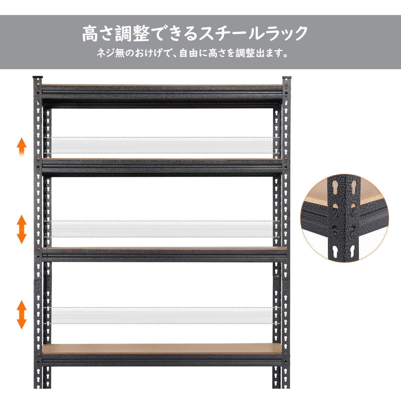 【ご購入前に必ずお読みください】本製品は棚当たりの荷重量が320kgであり、商品自体は重たい為、組み立てにはすべての金物が埋め込まれるまでハンマーで強く叩くことをお勧めします(ハンマーは含まれて居りません)。組み立てに問題が生じた場合でも、製品の品質上の問題ではないですので、横揺れもせずに頑丈に組み立てられるまで力加減して試してください。快適に作業できるようにインストールの詳細をアップロードしましで、ご確認ください。