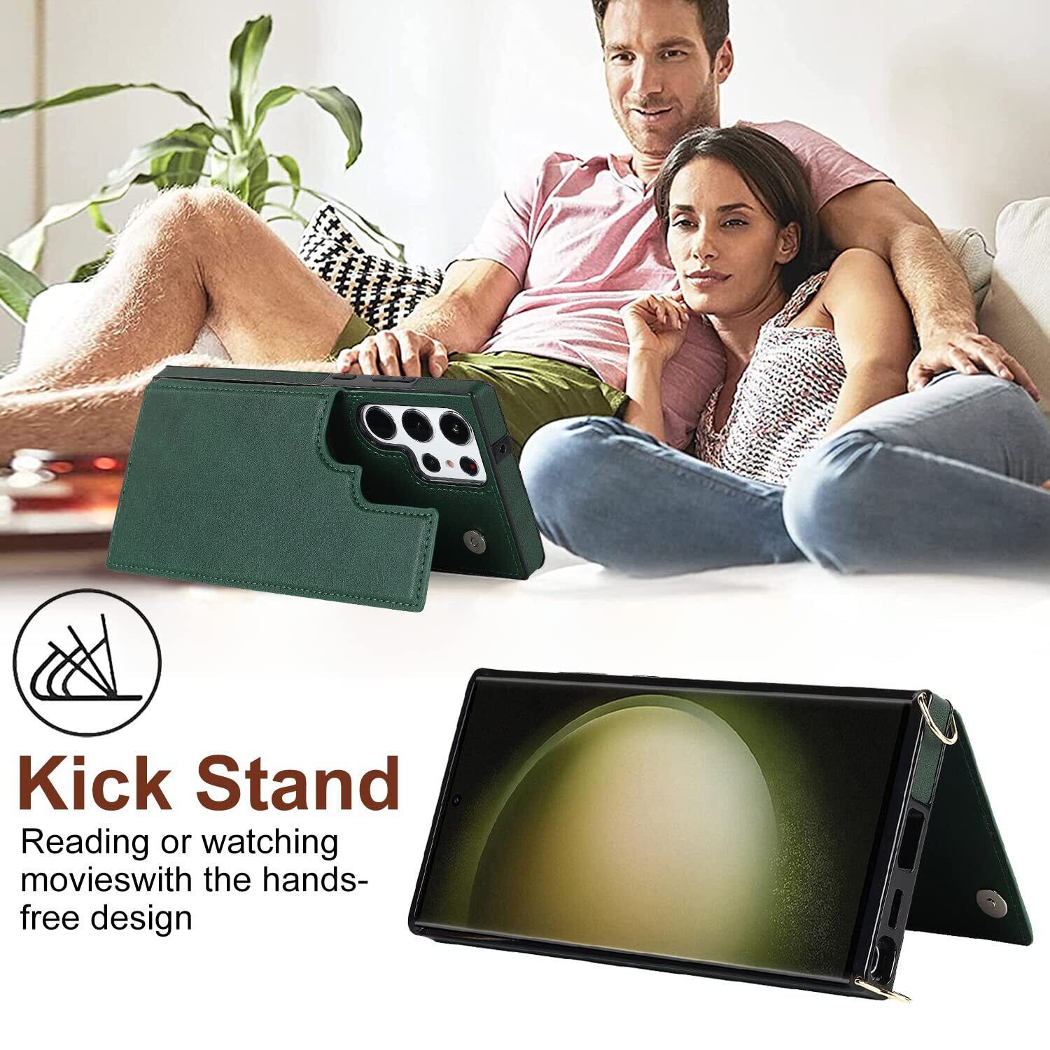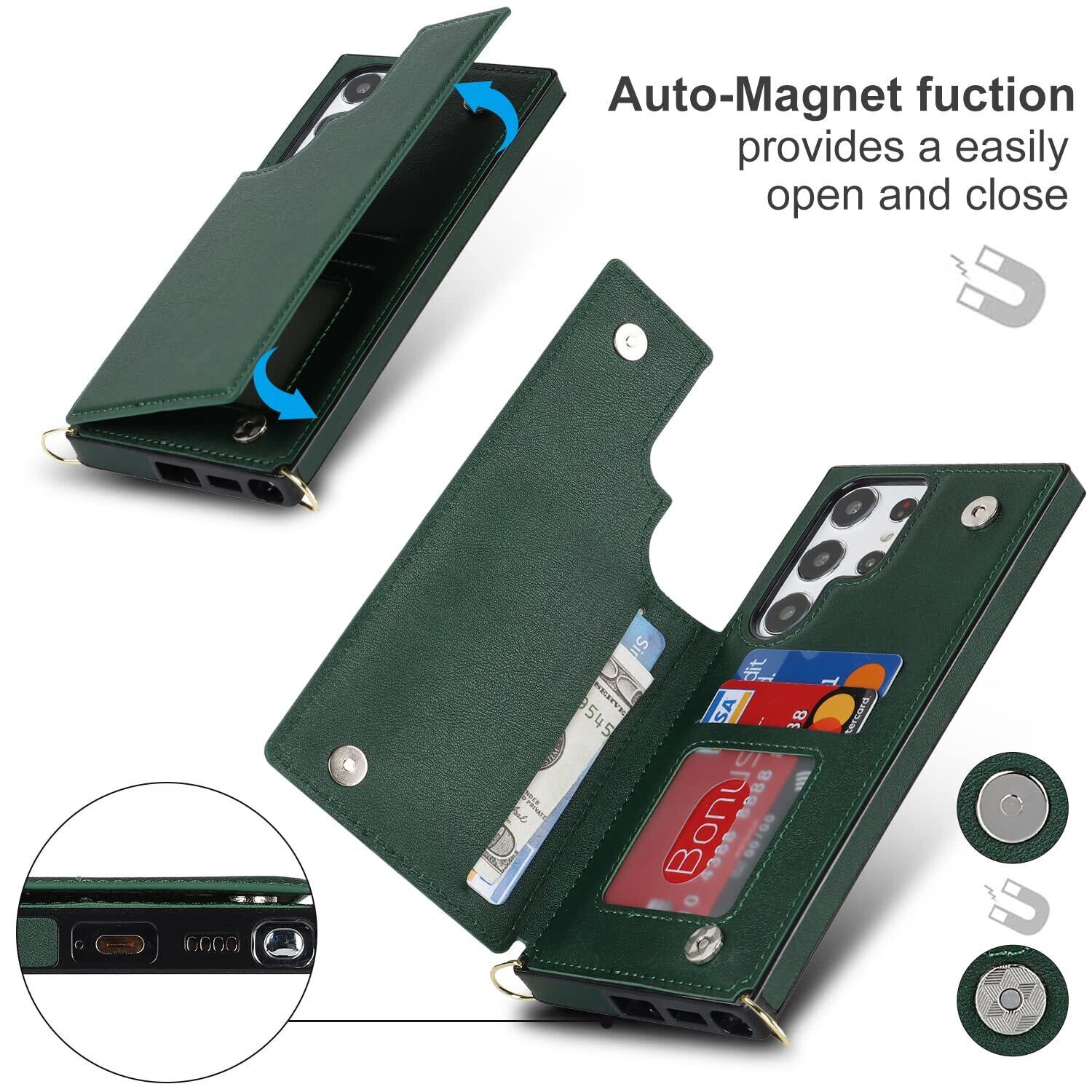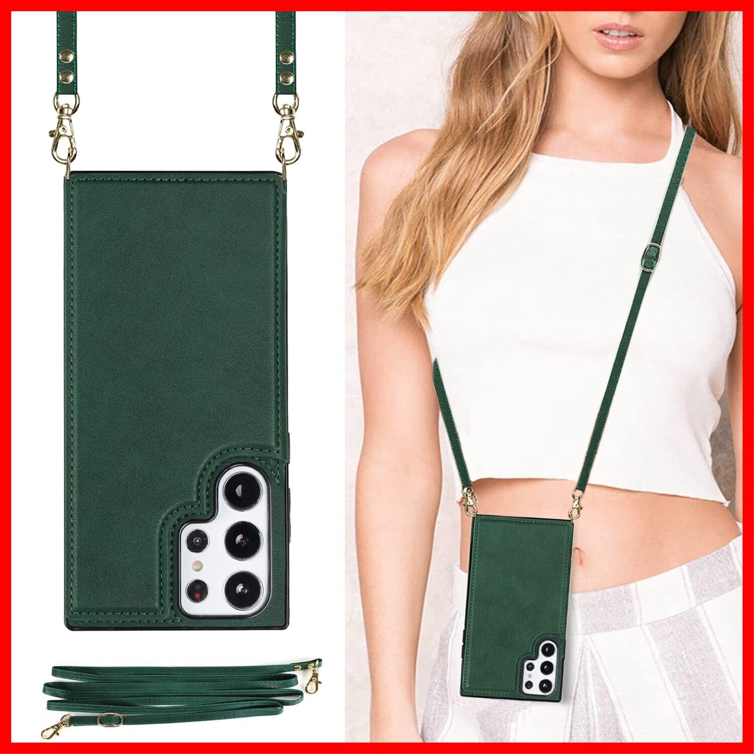 [適用 Galaxy S23 Ultra ケース ショルダー 窓口式 カード入れ スマホケース ストラップ付き ぎゃらくしーS23ウルトラ SC-52D SCG20 カバー 手帳型 斜めがけ 可愛い GalaxyS23Ultra ショルダーケース 首かけ 肩掛け かわいい おしゃれ RFIDスキミング防止機能 ロング クロスボディ 携帯カバー グリーン]