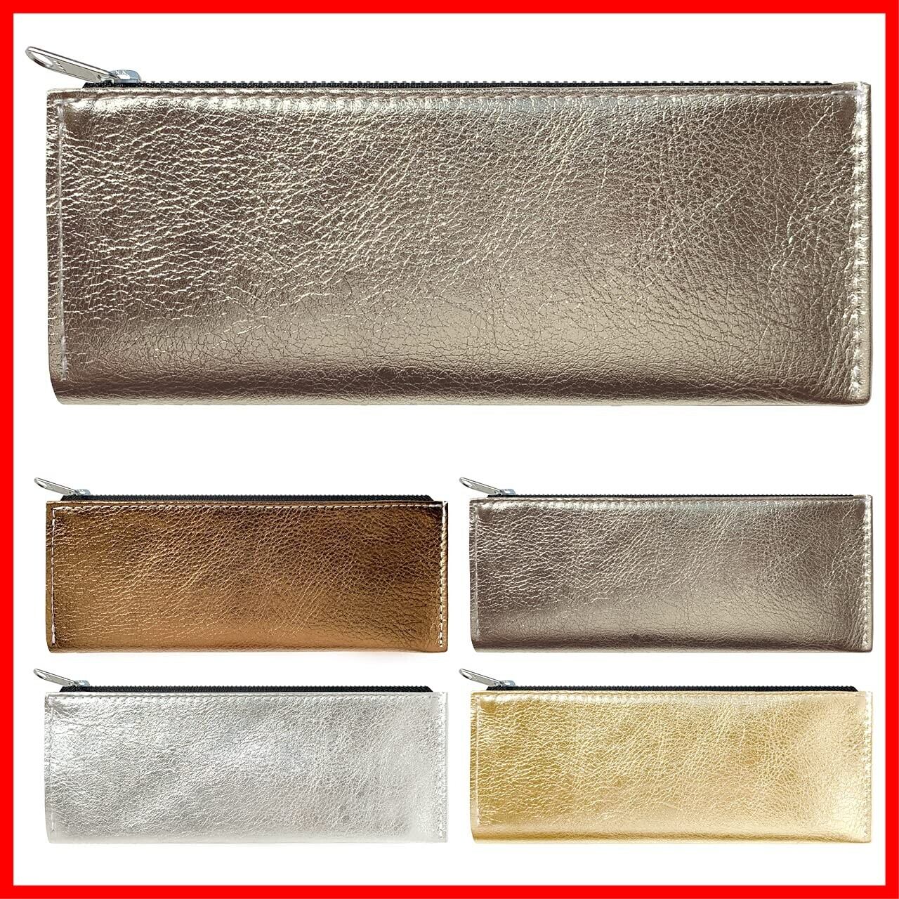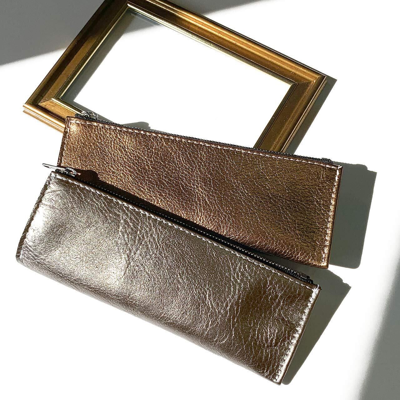 【高級感漂う本革のペンケース!】: このペンケースは、薄型でコンパクトながら、必要なアイテムはしっかり収納できます。洗練されたデザインと高級感あふれるメタリックレザーが、あなたのスタイルをより引き立てます。