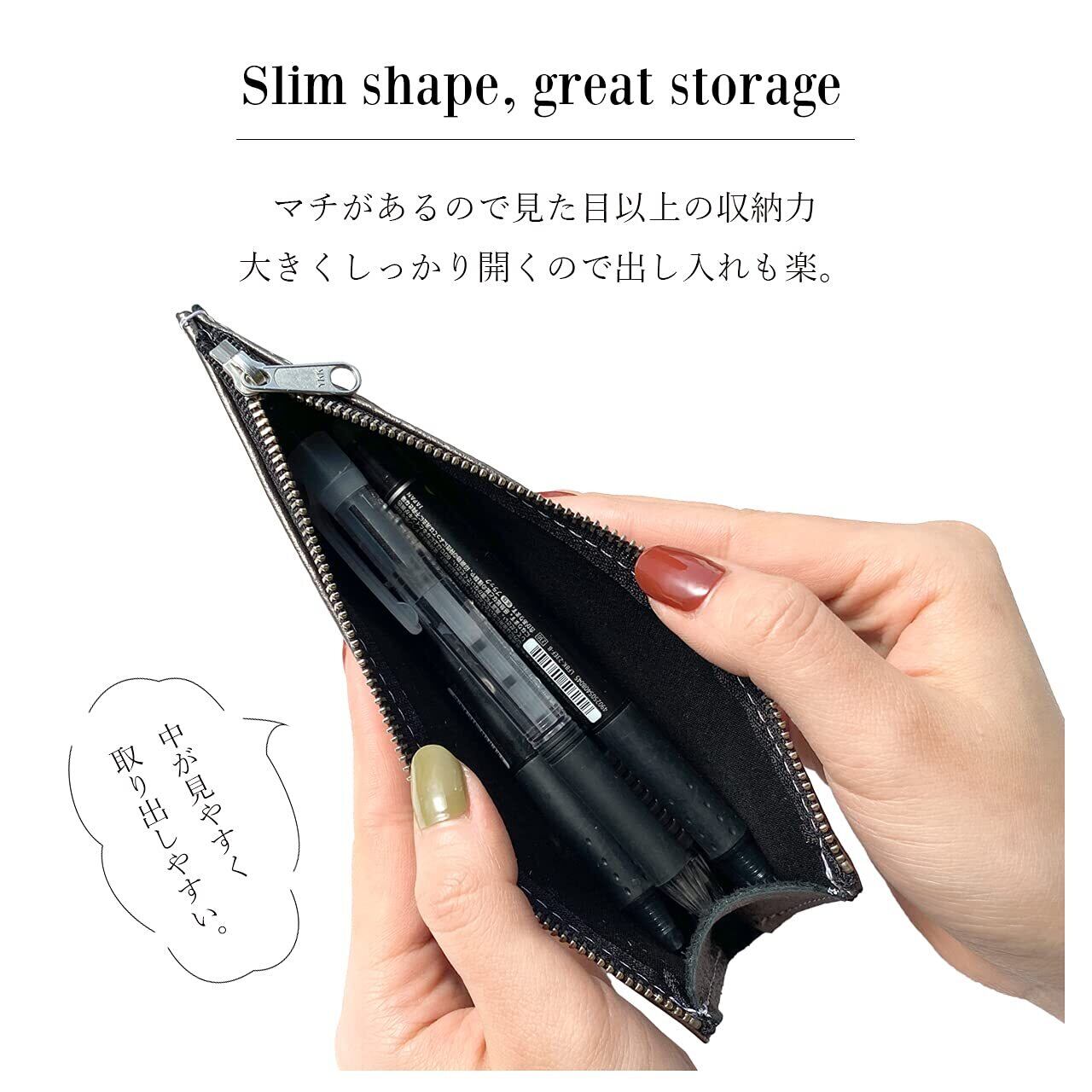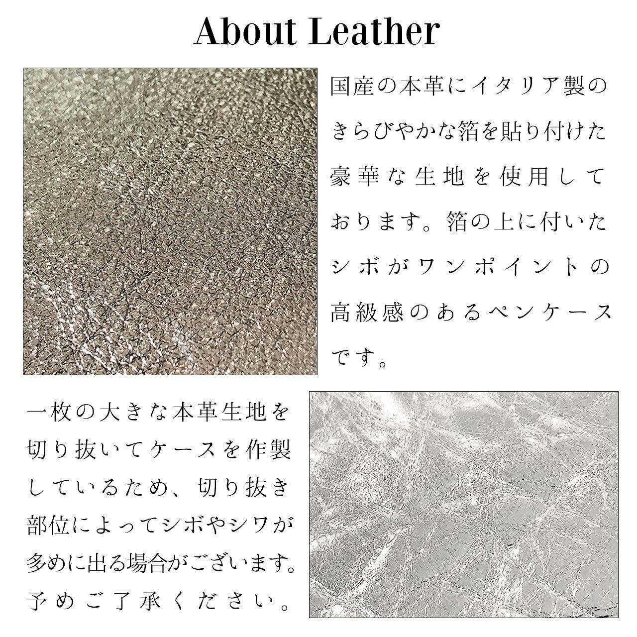 [ペンケース 革 薄型 本革 コンパクト スリム 筆箱 ペン入れ 筆入れ シンプル 高級 ステーショナリー おしゃれ メタリックレザー レディース YKKファスナー使用 メタリック ブラック]