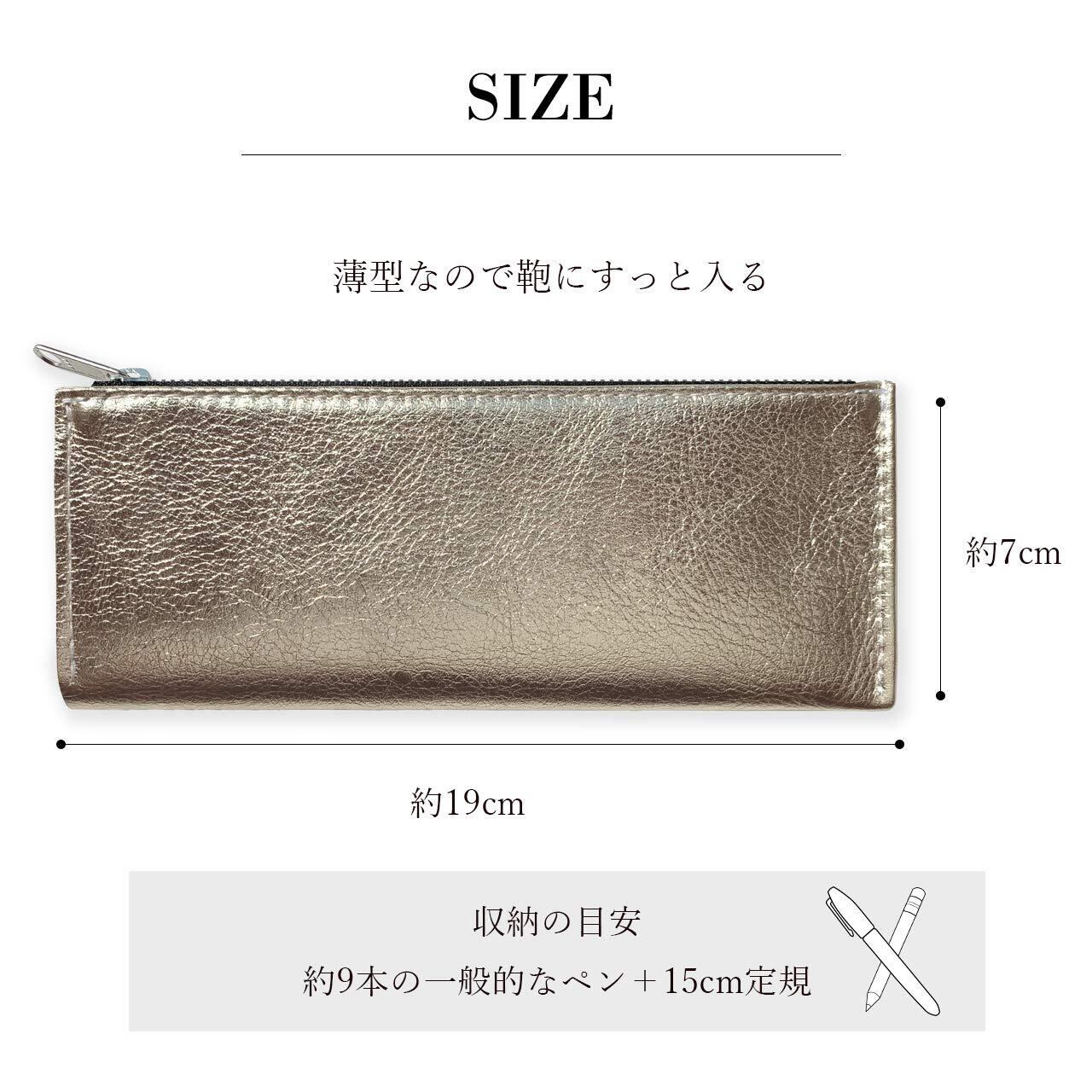 ペンケース 革 薄型 本革 コンパクト スリム 筆箱 ペン入れ 筆入れ シンプル 高級 ステーショナリー おしゃれ メタリックレザー レディース YKKファスナー使用 メタリック ブラック