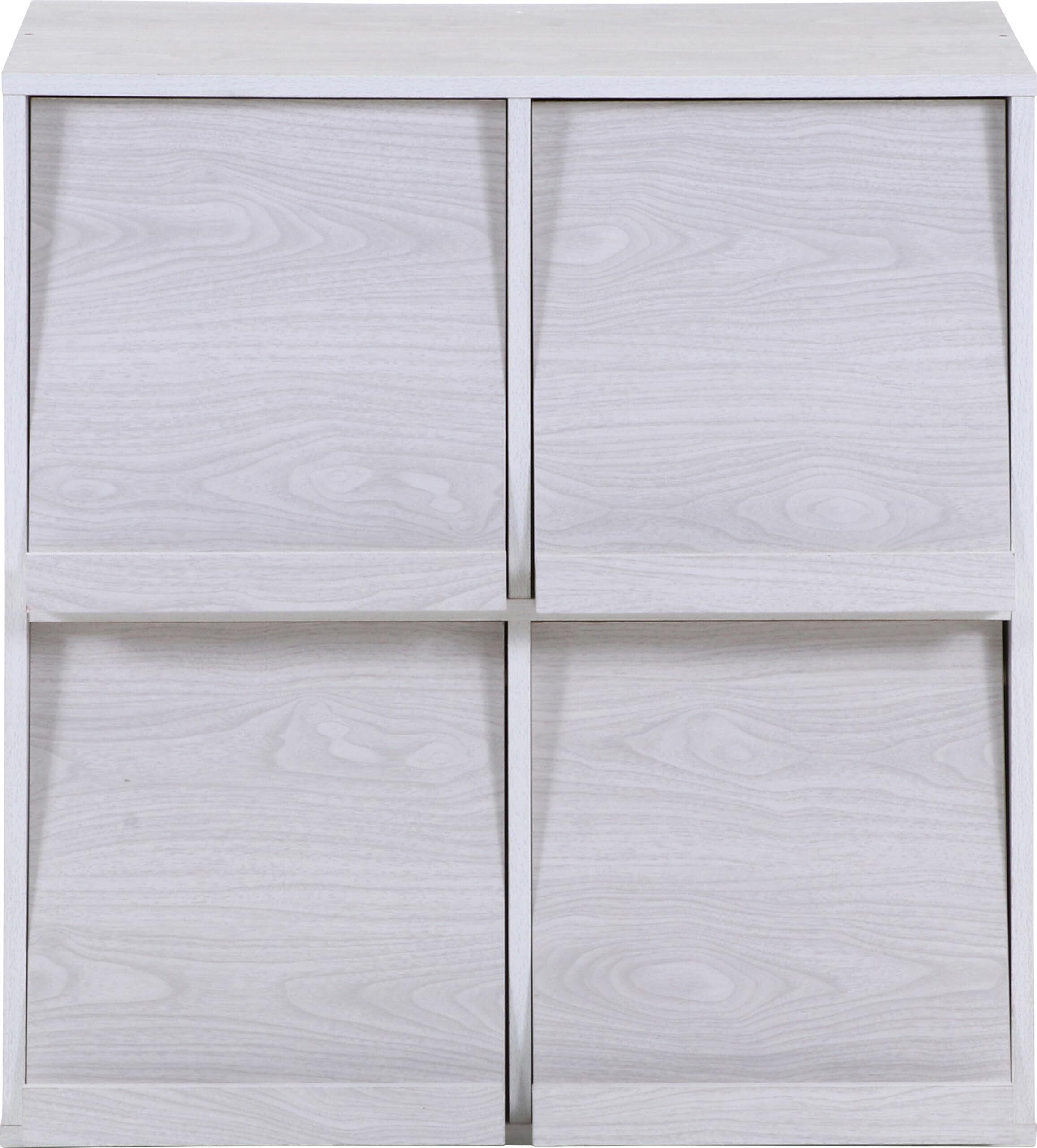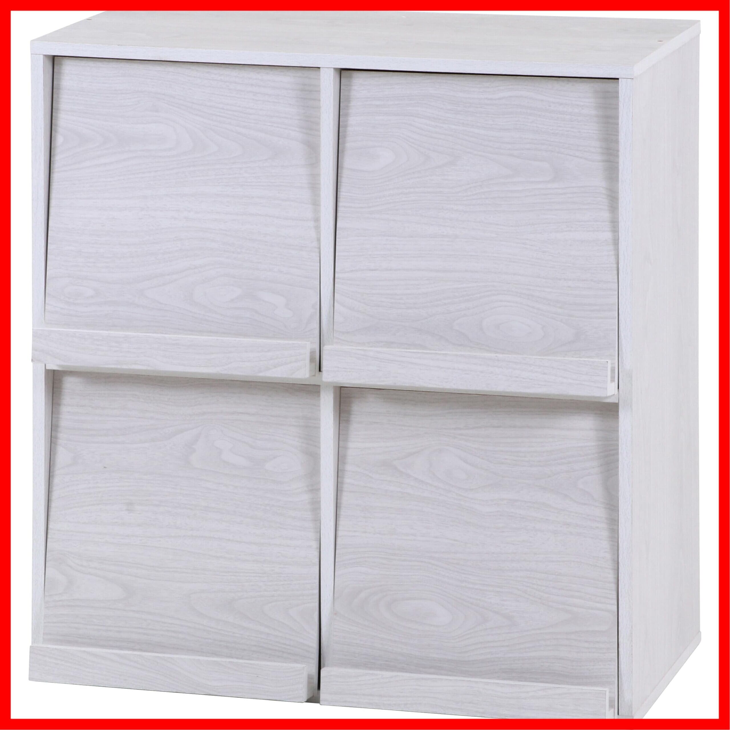 不二貿易 (Fujiboeki) ディスプレイラック 本棚 幅80×奥行46.5×高さ85cm ホワイトウォッシュ4マス マガジンラック 扉付き フラップ扉 99282