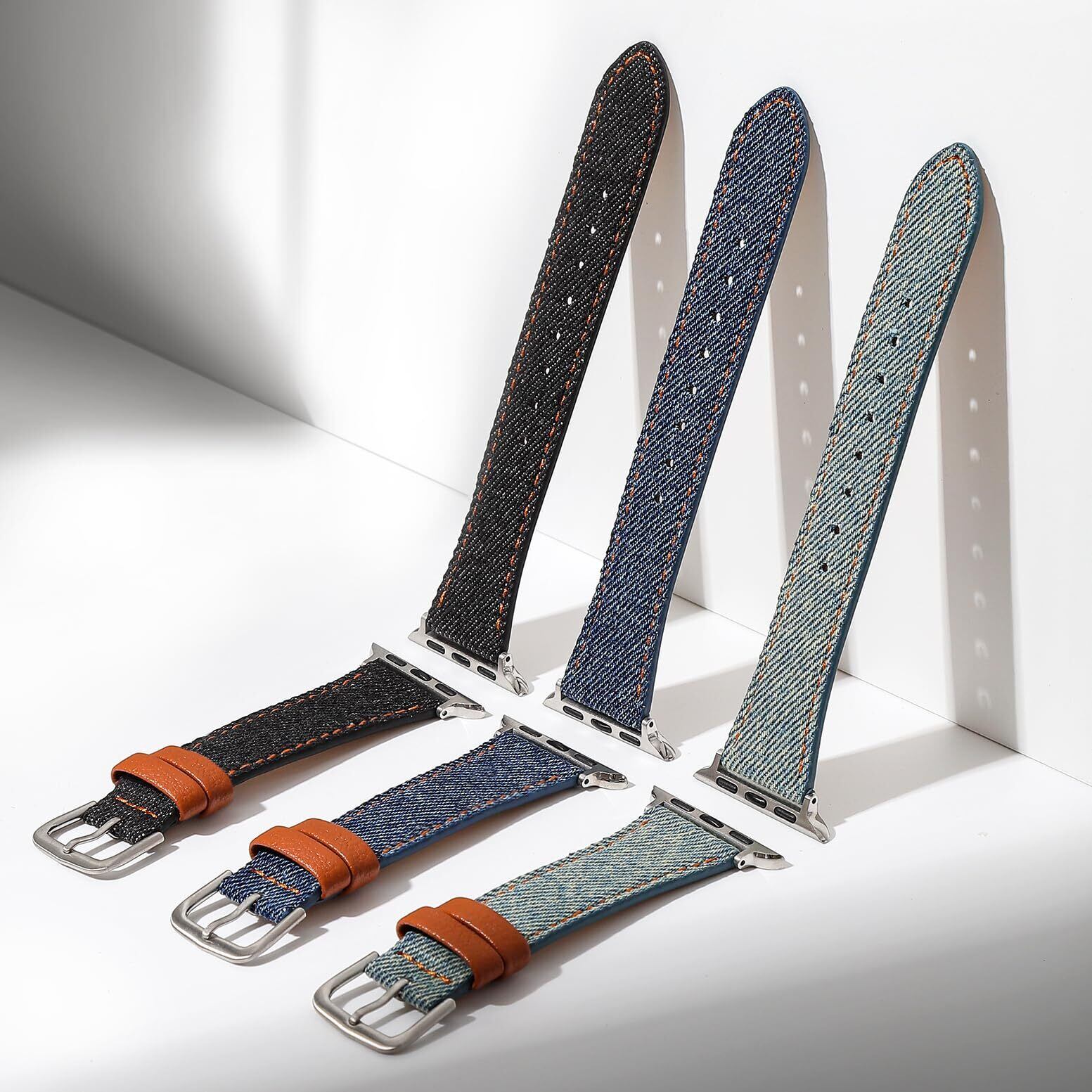 ファッション性と機能性を兼ね備えた、HandodoのApple Watchバンド。デニムと本革の組み合わせが特徴で、スタイリッシュな印象を与えます。柔らかな素材は手首にフィットし、着け心地の良さを実感できます!