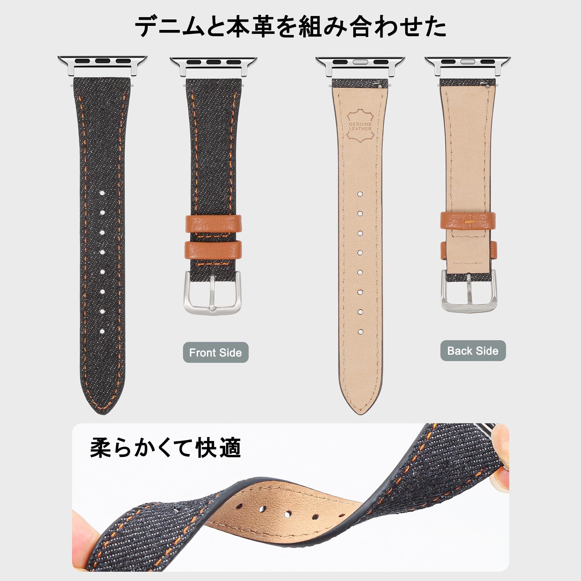 【2025新しいデザイン】Apple Watch バンドはデニムと牛革のダプルフエイス仕様で、着け心地抜群の柔らかさと、落ち感のあるしなやかさが特徵です。1日中着けていても疲れを感じにくく、使うほどにしなやかさが増して手首に馴染みます。