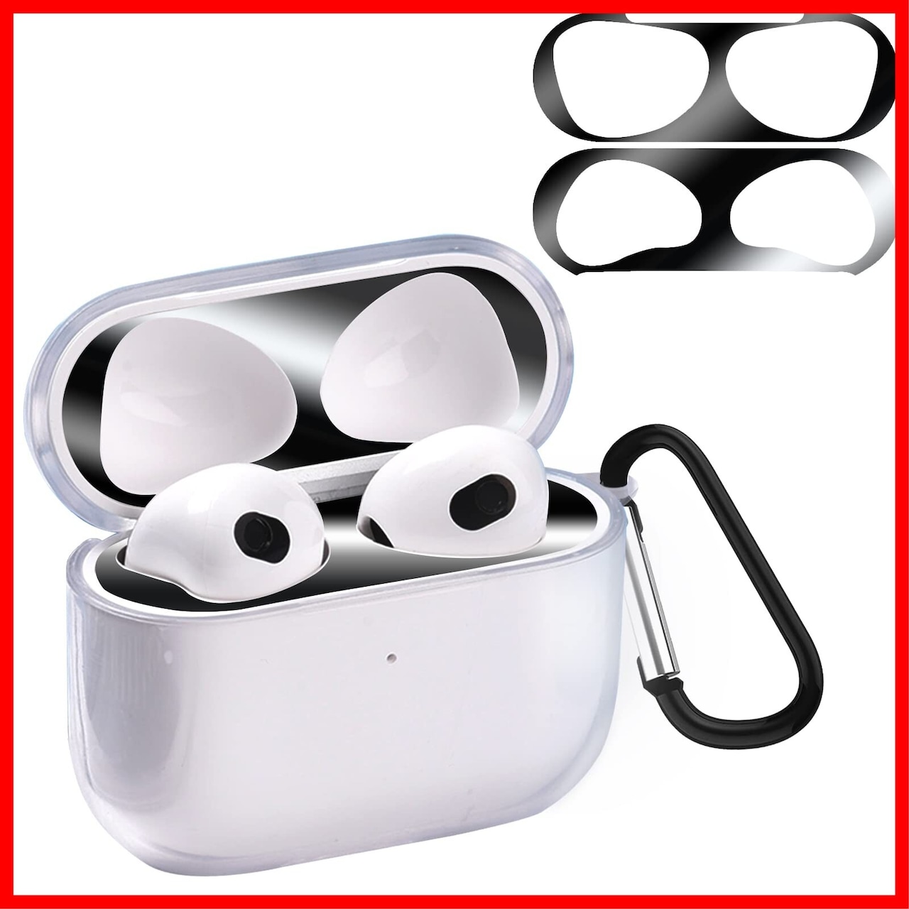 AirPods 3 用 ケース 【ダストガード付き】AirPods 第3世代 ソフトTPU素材 ケース 分離式 防塵 落下防止 耐衝撃 全面保護カバー アップルイヤホン 保護ケース カラビナ付き AirPods 3 対応 保護ケース(クリア) | hananoki