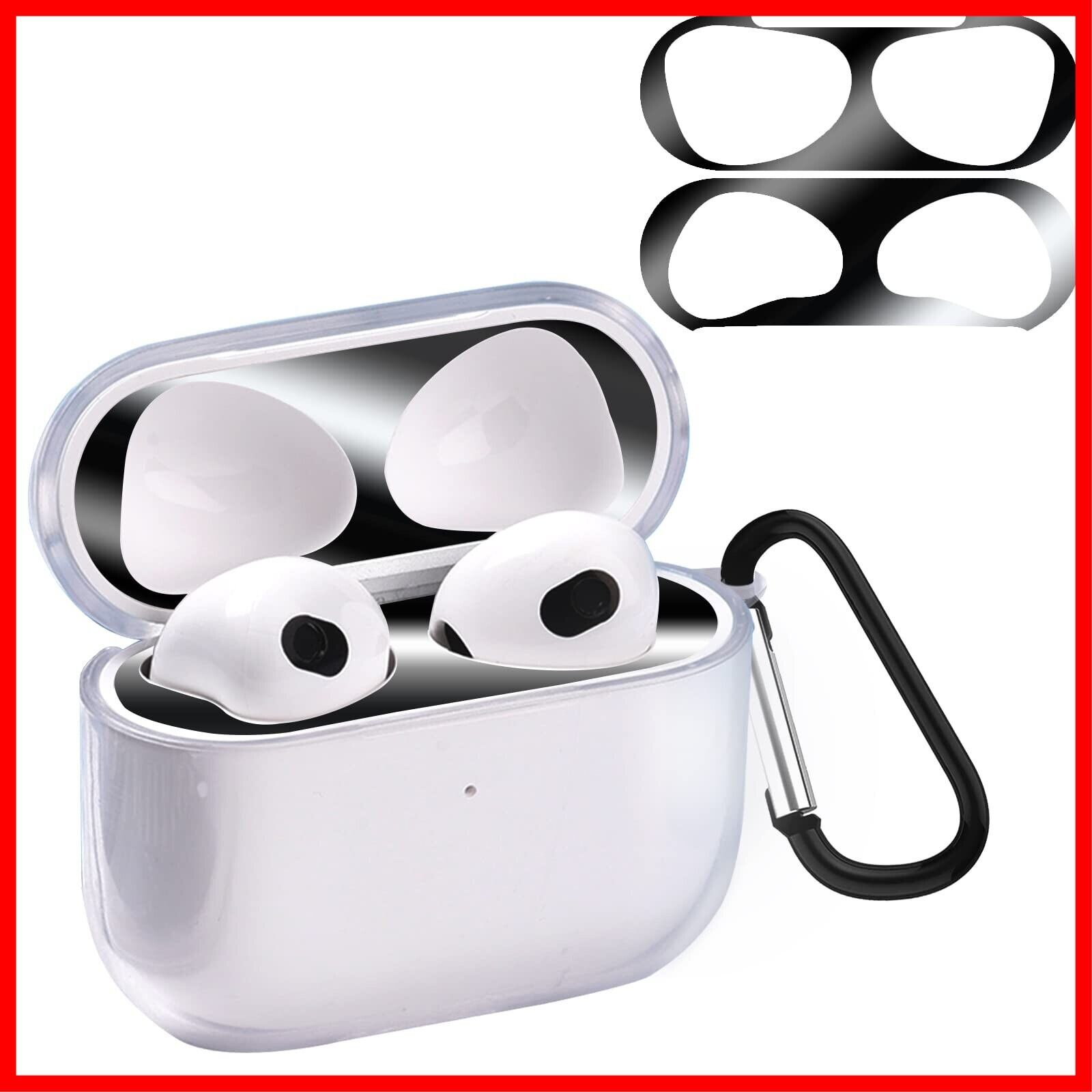 AirPods 3 用 ケース 【ダストガード付き】AirPods 第3世代 ソフトTPU素材 ケース 分離式 防塵 落下防止 耐衝撃 全面保護カバー アップルイヤホン 保護ケース カラビナ付き AirPods 3 対応 保護ケース(クリア)