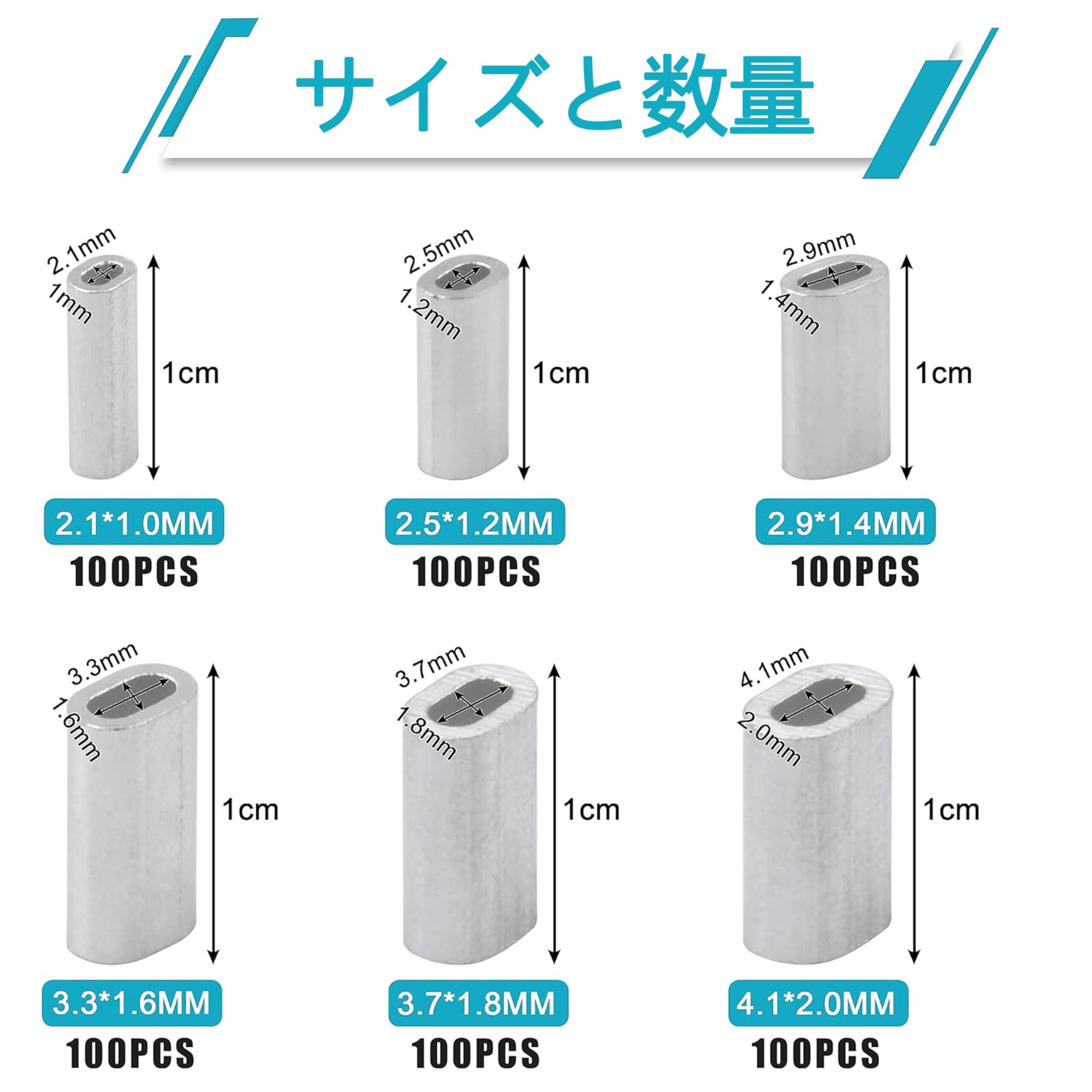 【600本ワイヤースリーブセット】アルミオーバルスリーブ600本入り 内径長さ*内径幅 2.1*1.0mm-100pcs 2.5*1.2mm-100pcs 2.9*1.4mm-100pcs 3.3*1.6mm-100pcs 3.7*1.8mm-100pcs 4.1*2.0mm-100pcs