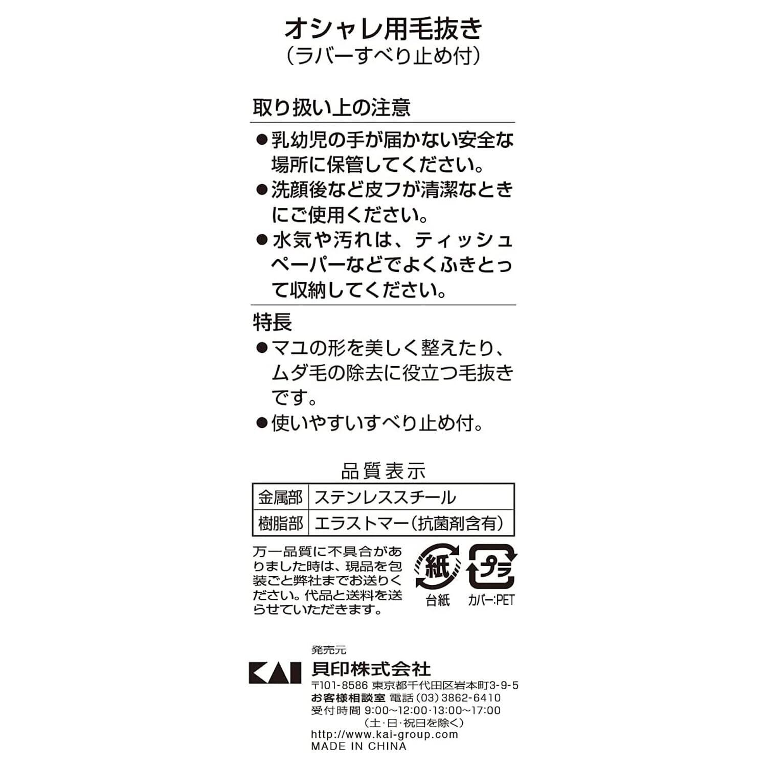 貝印 KAI スタンダードセレクション 毛抜き 先斜 すべり止め ピンセット用 HL0405