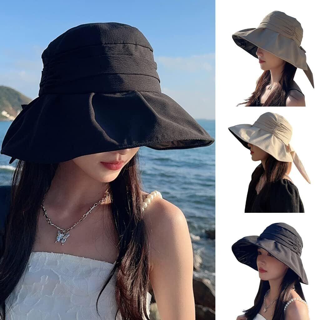 [YAYAMIYA] UVカット 帽子 レディース ハット レディース 日焼け防止【つば広・小顔効果・折りたたみ・サイズ調節】遮光 遮熱 通気 紫外線対策 日除け帽子 ワイヤー入り あご紐 散歩 旅行 通勤 大きいサイズ 春夏