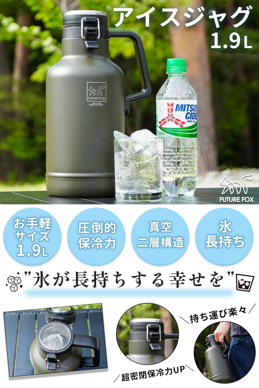 FUTUREFOX アイスコンテナ ジャグ 氷入れ キャンプ アウトドア 1.9L/3.8L (1/2ガロン (約1.9L))