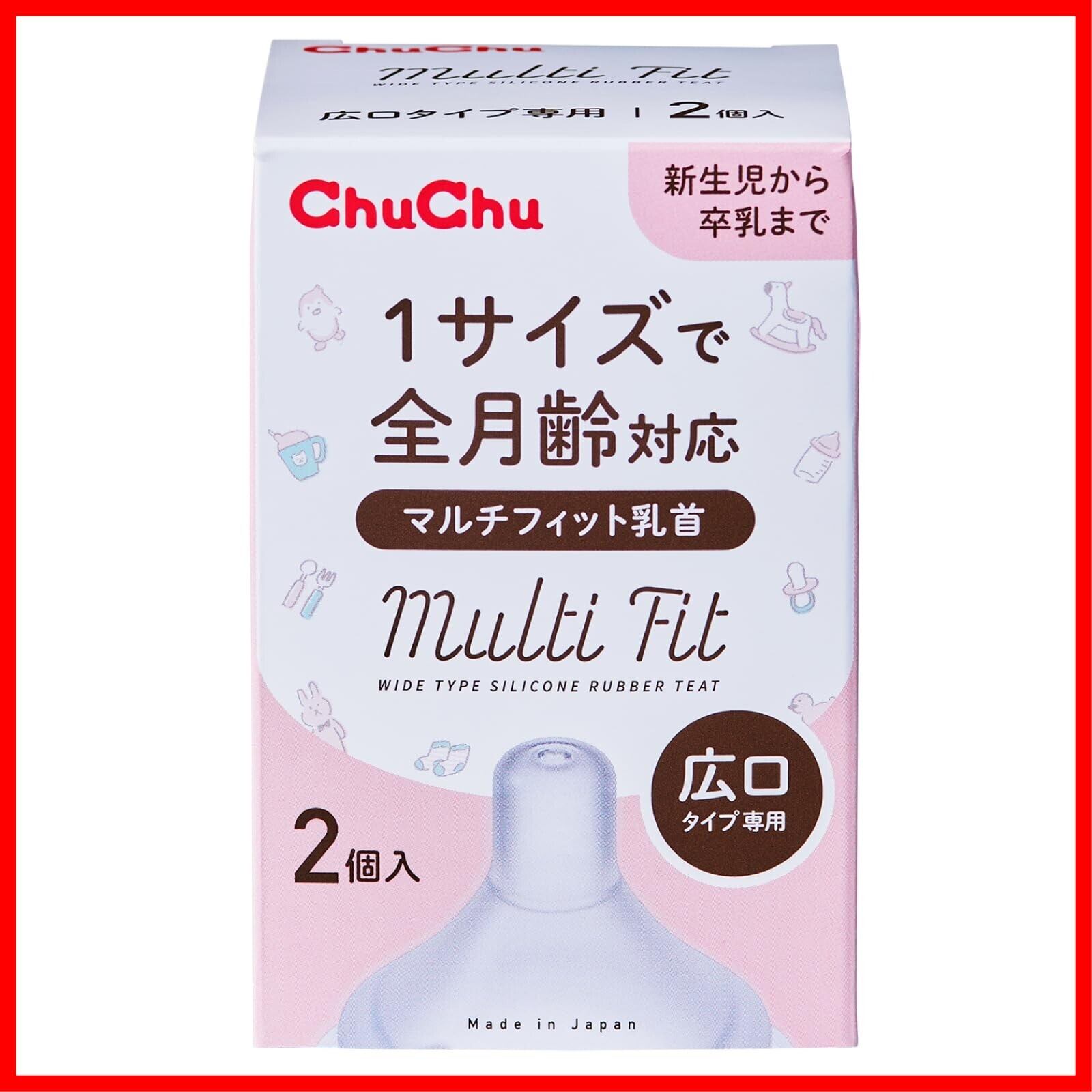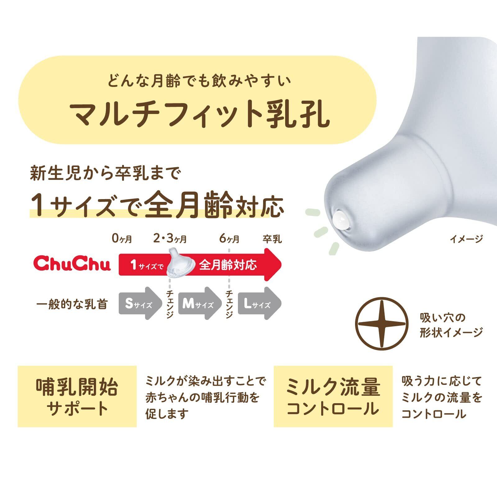 ChuChu(チュチュ) マルチフィット広口タイプシリコーンゴム製乳首 2個入 日本製 新生児 卒乳 全月齢