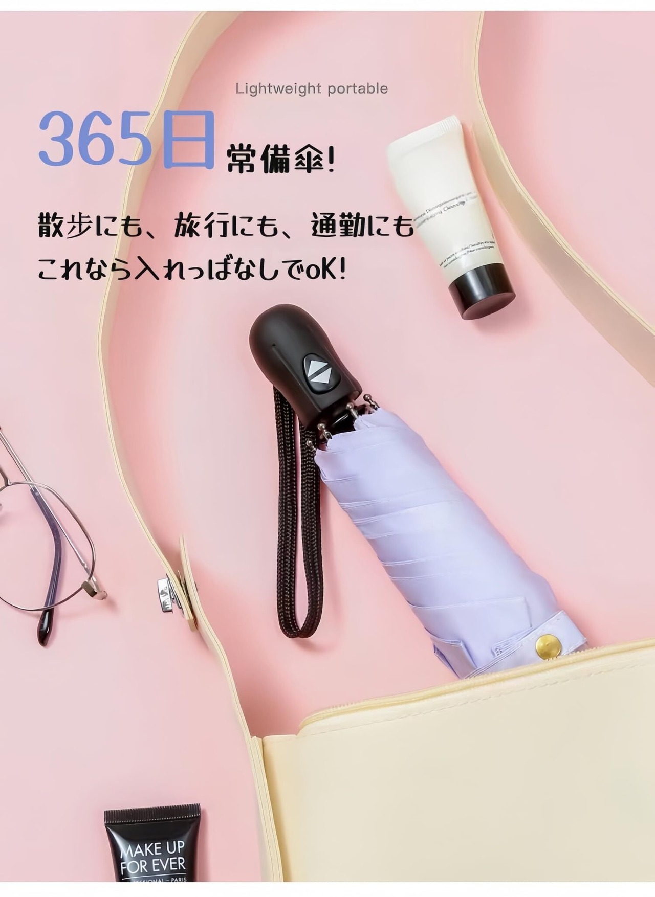 【超軽量227g·携帯便利】自動開閉折り畳み日傘なのに、ガラス繊維と航空アルミ合金傘骨を採用するので、 傘本体の重さは227gの軽量化に実現しました。スマホのように軽量で持ち歩きやすいです。子供から大人まで快適にご利用いただけます。通勤、通学、旅行や出張など適用。
