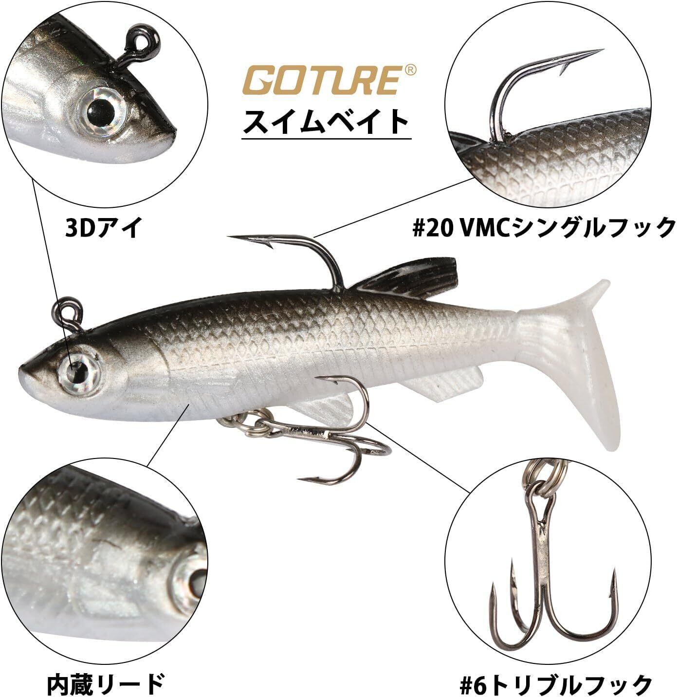 Goture(ゴチュール) スイムベイト バス ルアー ワームジグ リアル ソフトルアー 5本セット